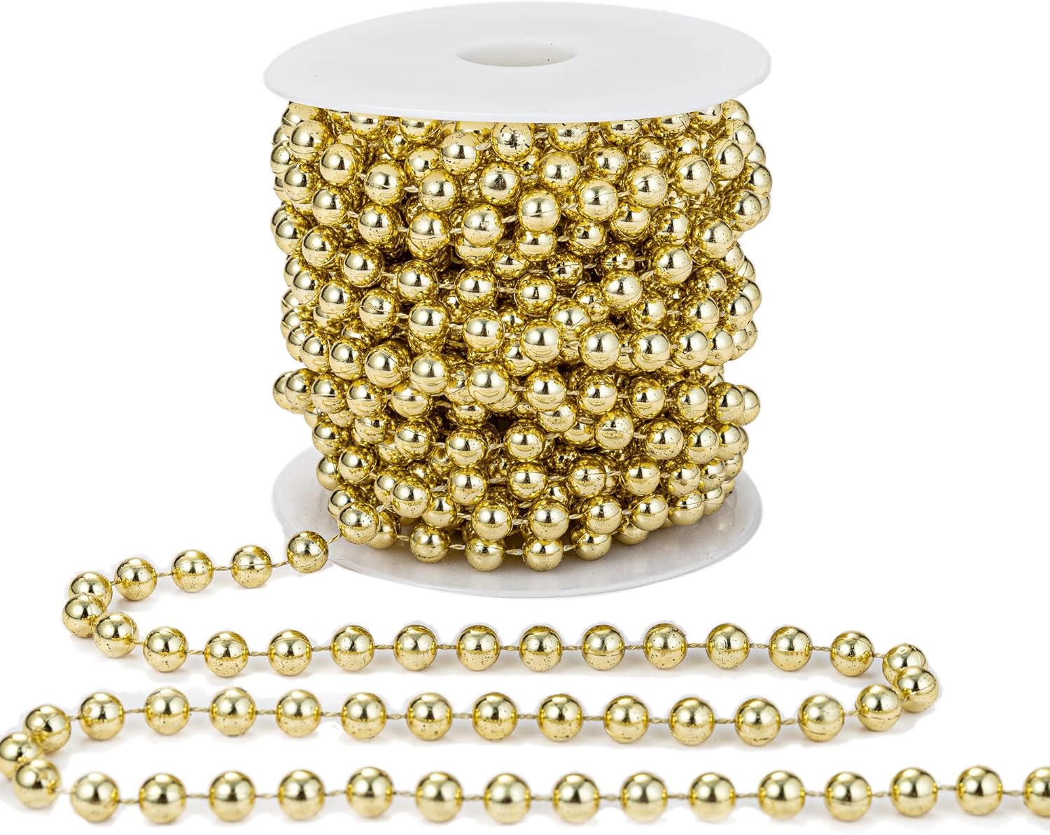 8mm Crafts Faux Pearl Beads Garland Pearl Bead Roll Strand of Pearls to Decorate Floral Centerpieces Wedding Party Favor Christmas Tree(33 Feet Gold)