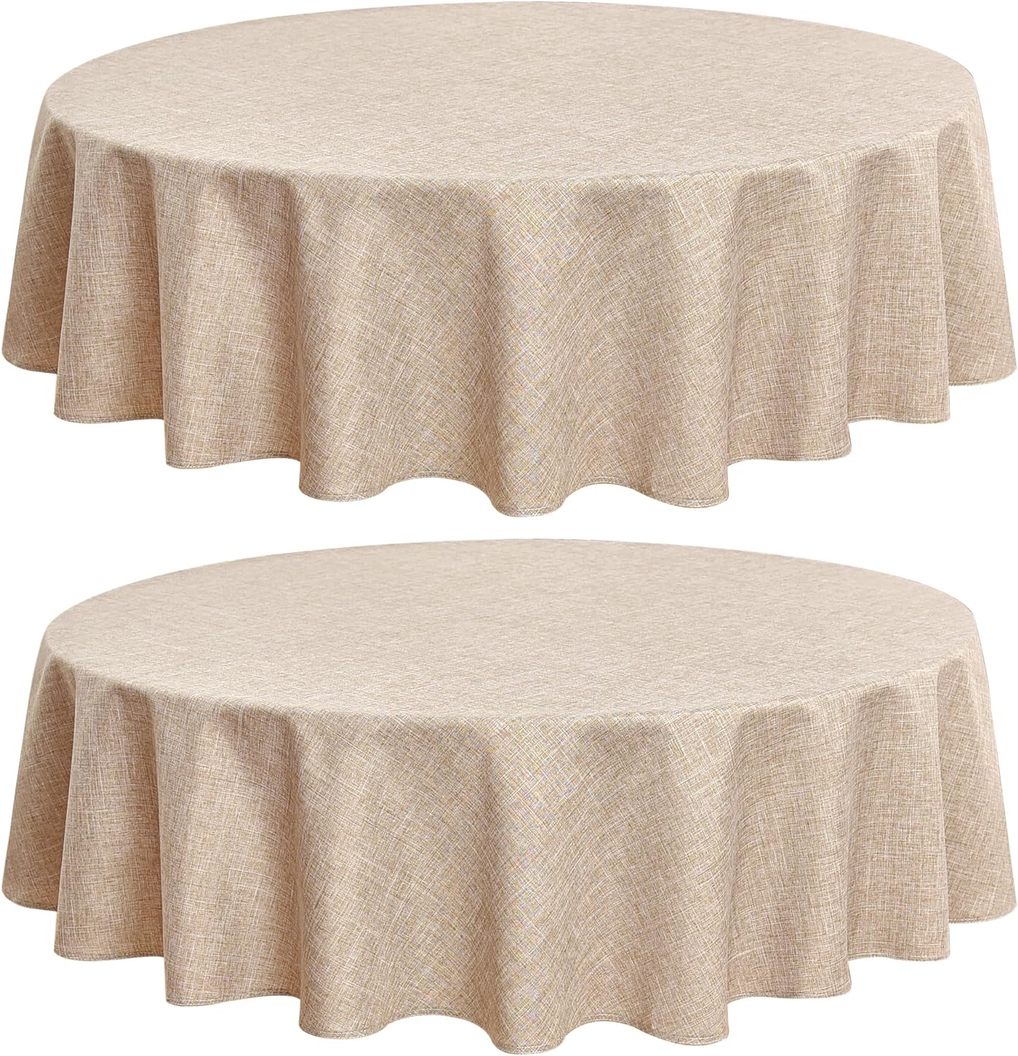 Fitable Faux Linen Textured Beige Round Tablecloths 60 Inches - 2 Pack Faux Burlap Table Clothes for Banquet, Party, Dining, Farmhouse, Outdoor (Great for 20"-48" Round Tables)