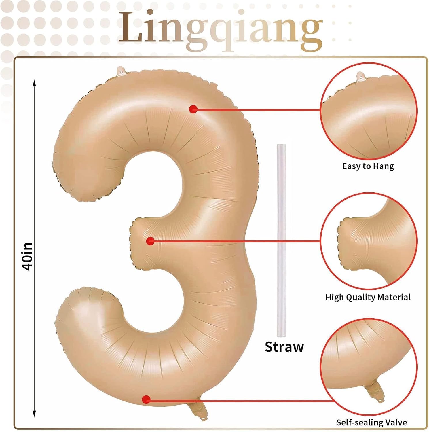 - π Easy to Inflate π - The big light brown number 3 foil balloons have self-sealing valve does not need to be knotted for easy inflation and deflation. It can be inflated with air or helium. When filled with helium, the balloons can float in the air; after filling, press the valve of the digital balloon to seal it. It can be reused. Do not throw away after use!