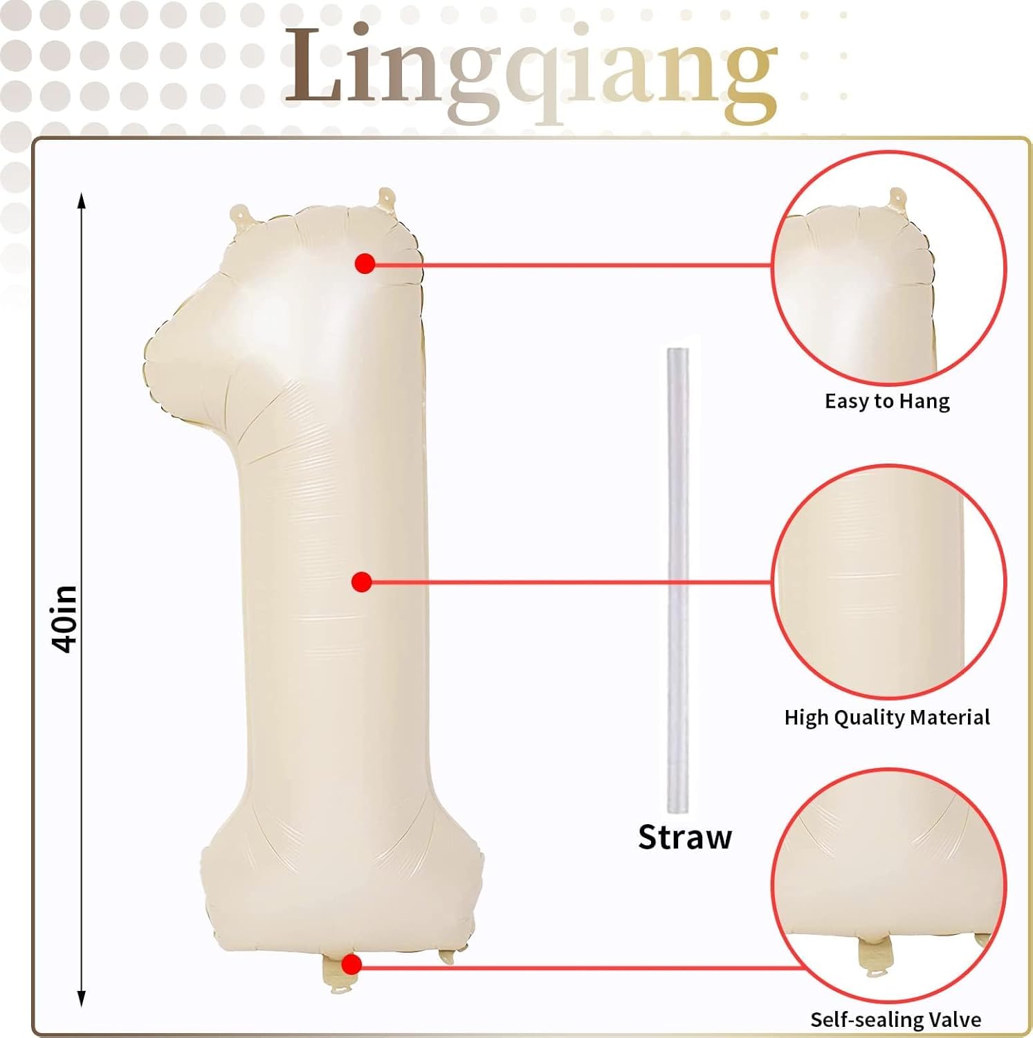 - π Easy to Inflate π - The big cream number 1 foil balloons have self-sealing valve does not need to be knotted for easy inflation and deflation. It can be inflated with air or helium. When filled with helium, the balloons can float in the air; after filling, press the valve of the digital balloon to seal it. It can be reused. Do not throw away after use!