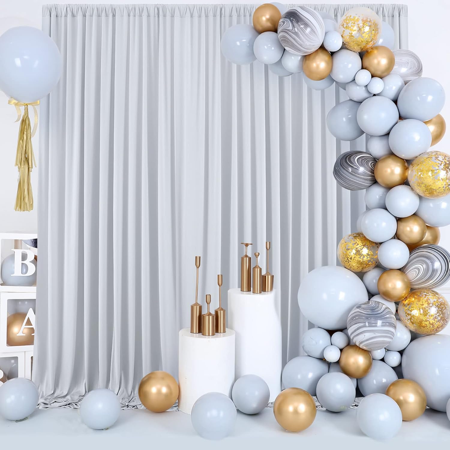10 ft x 8 ft Wrinkle Free Silver Backdrop Curtain for Parties, Polyester Silver Grey Backdrop Drapes 2 Panels 5x8ft for Baby Shower Photoshoot Engagement Wedding Birthday Photography Background