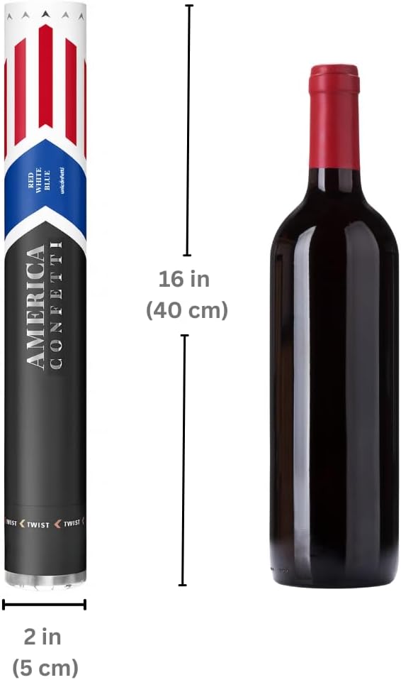 - ๐ SUPER LOUD & FUN for INDEPENDENCE DAY - 6 JUMBO-SIZED poppers shooting RED WHITE and BLUE confetti papers up to 25 feet, leaving them to dance and twirl in the air. Poppers will shoot with a loud [POP] that will guarantee to get everyone's attention.