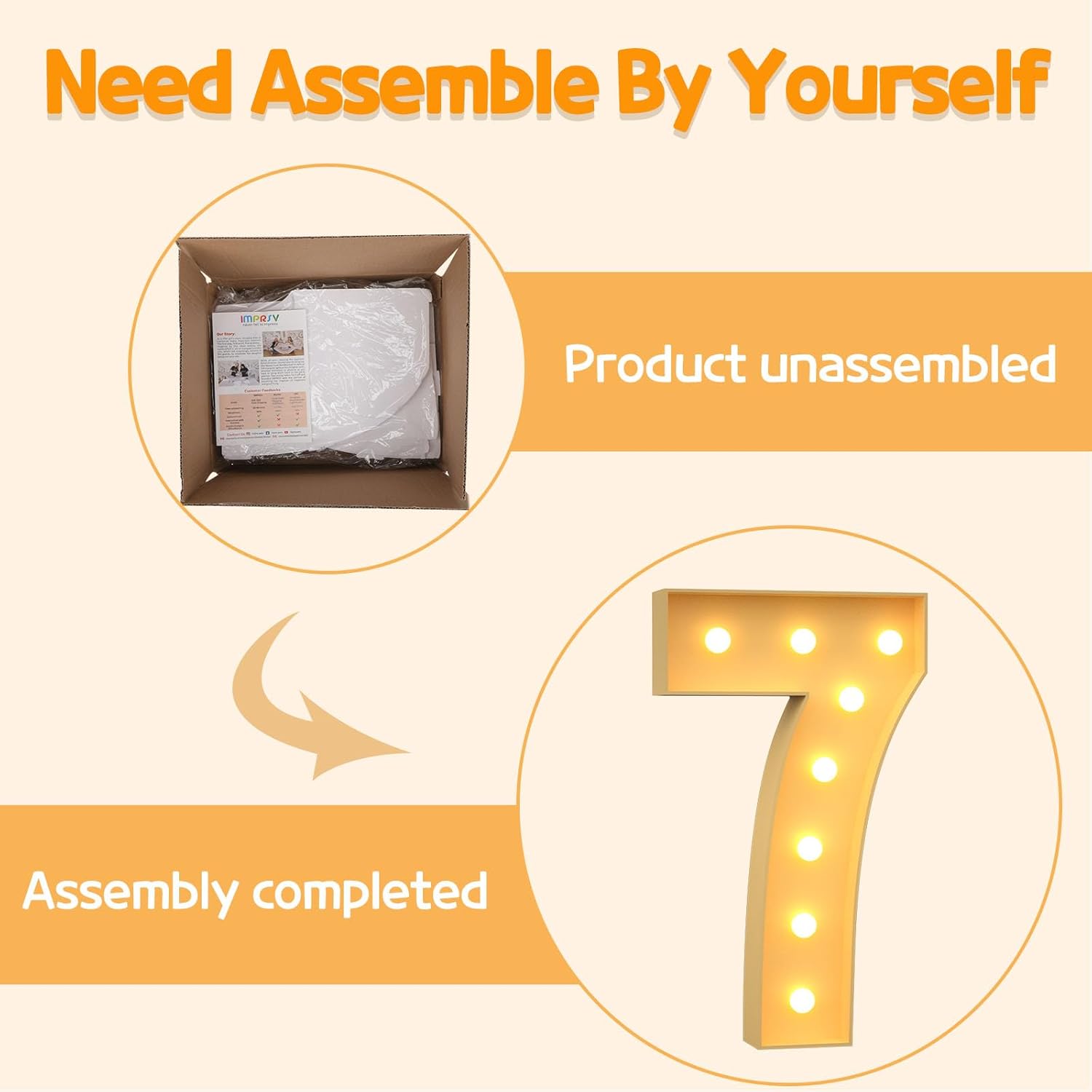 - Assembly Required: Our large marquee numbers is made from foam board and easy to assemble with our splicing mode. Just follow the numbered instructions to align and insert the bottom plate, and reinforce it with a hot glue gun. Then, you're done!