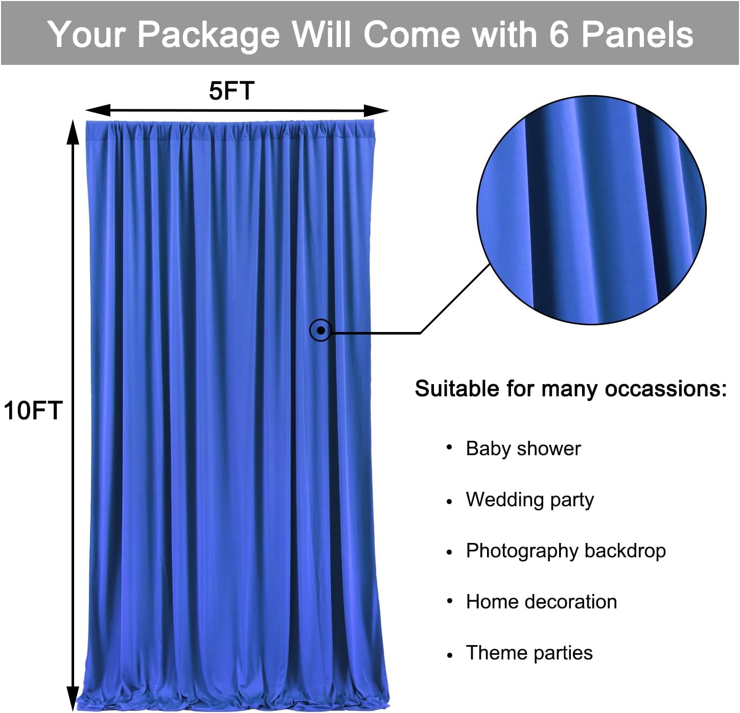 30ft x 10ft Wrinkle Free Royal Blue Backdrop Curtain for Party, Polyester Royal Blue Photo Backdrop Drapes 6 Panels 5x10ft for Birthday Photography Background Weddings Baby Shower Party
