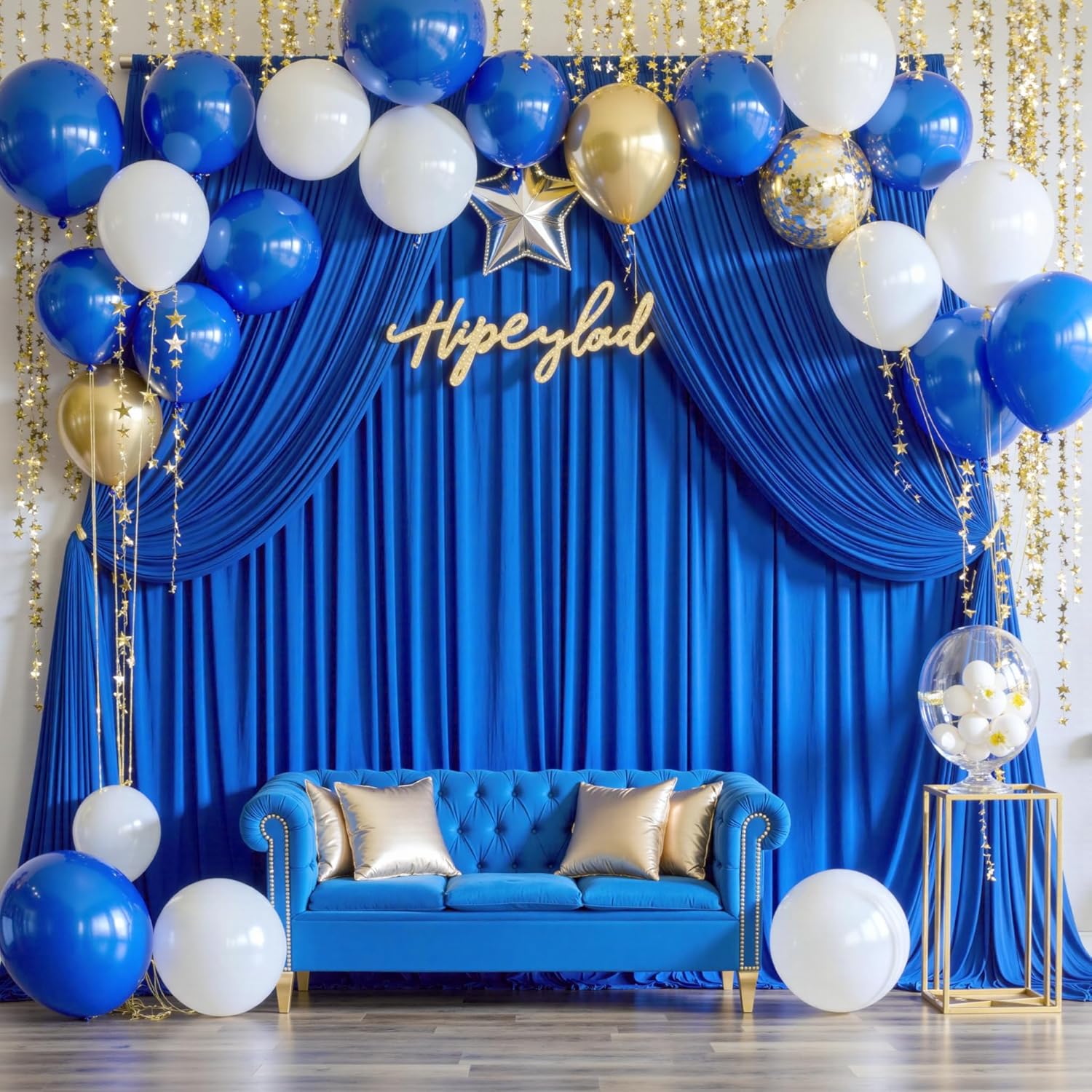 - Large Royal Blue Photo Backdrop is Suitable Various Occassions: Our polyester drapes are perfect for kinds of accassions. Such as theme parties, wedding, baby shower, birthday party, photography, bridal shower, gender reveal, princess party, engagement party, baptism, candy buffets, dessert table, sweet table, background, photo booths, photoshoot, ceremony, anniversary, graduation, home decorations, holiday party, stage curtain and more.