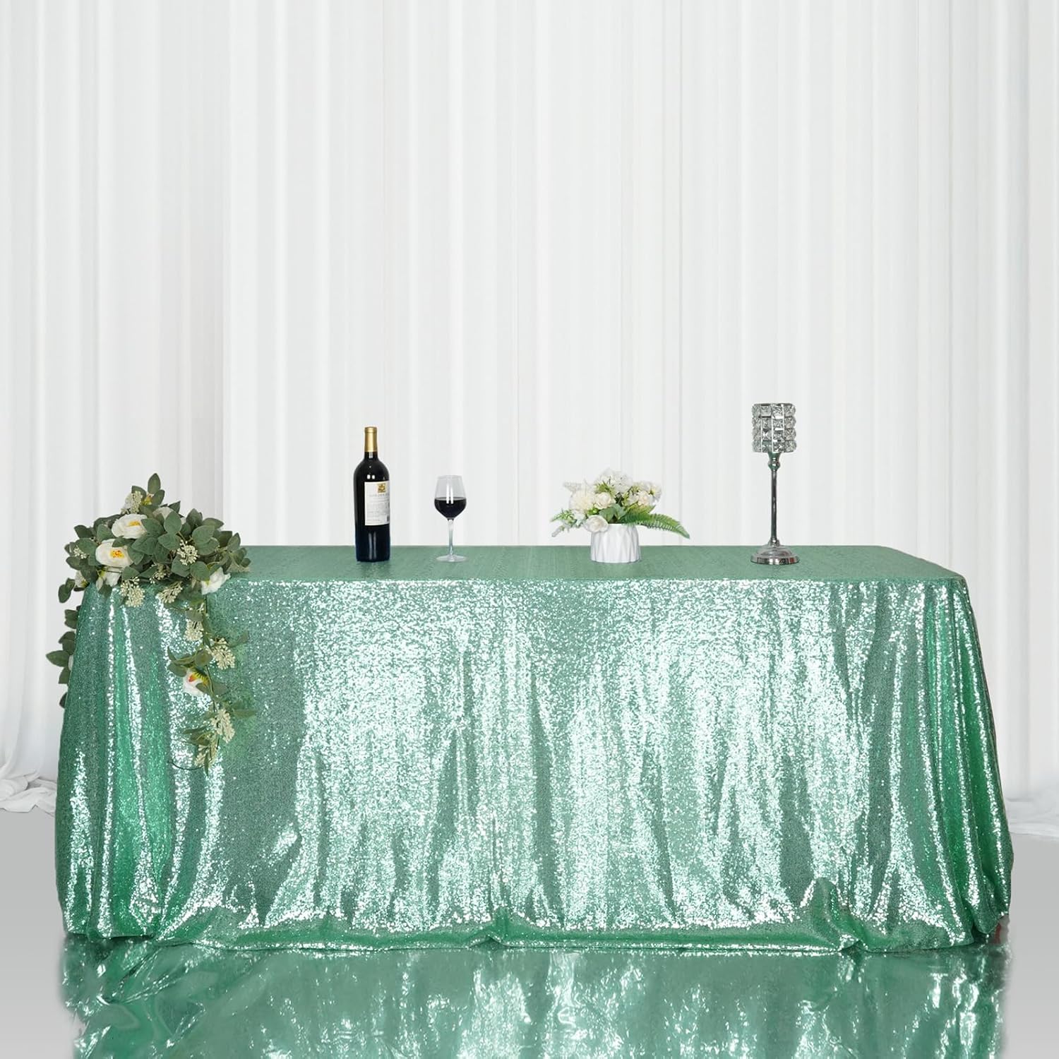 SquarePie Sequin Tablecloth 60 x 120 Inch Mint Green Sparkly Table Linen for Wedding Party