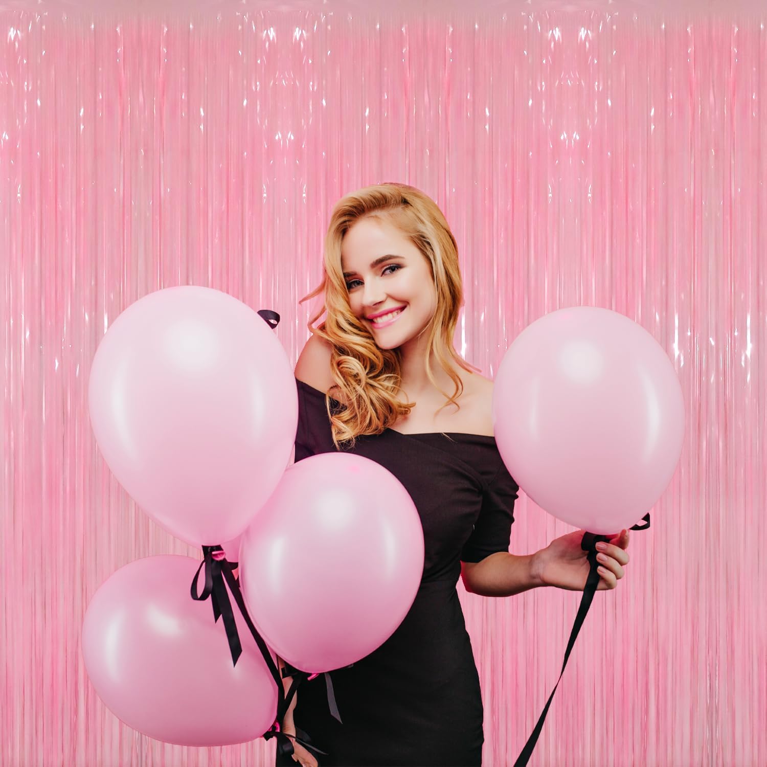 GOER 6.4 ft x 8.2 ft Metallic Tinsel Foil Fringe Curtains Party Photo Backdrop Party Streamers for Birthday,Graduation,New Year Eve Decorations Wedding Decor(2 Packs,Candy Pink)