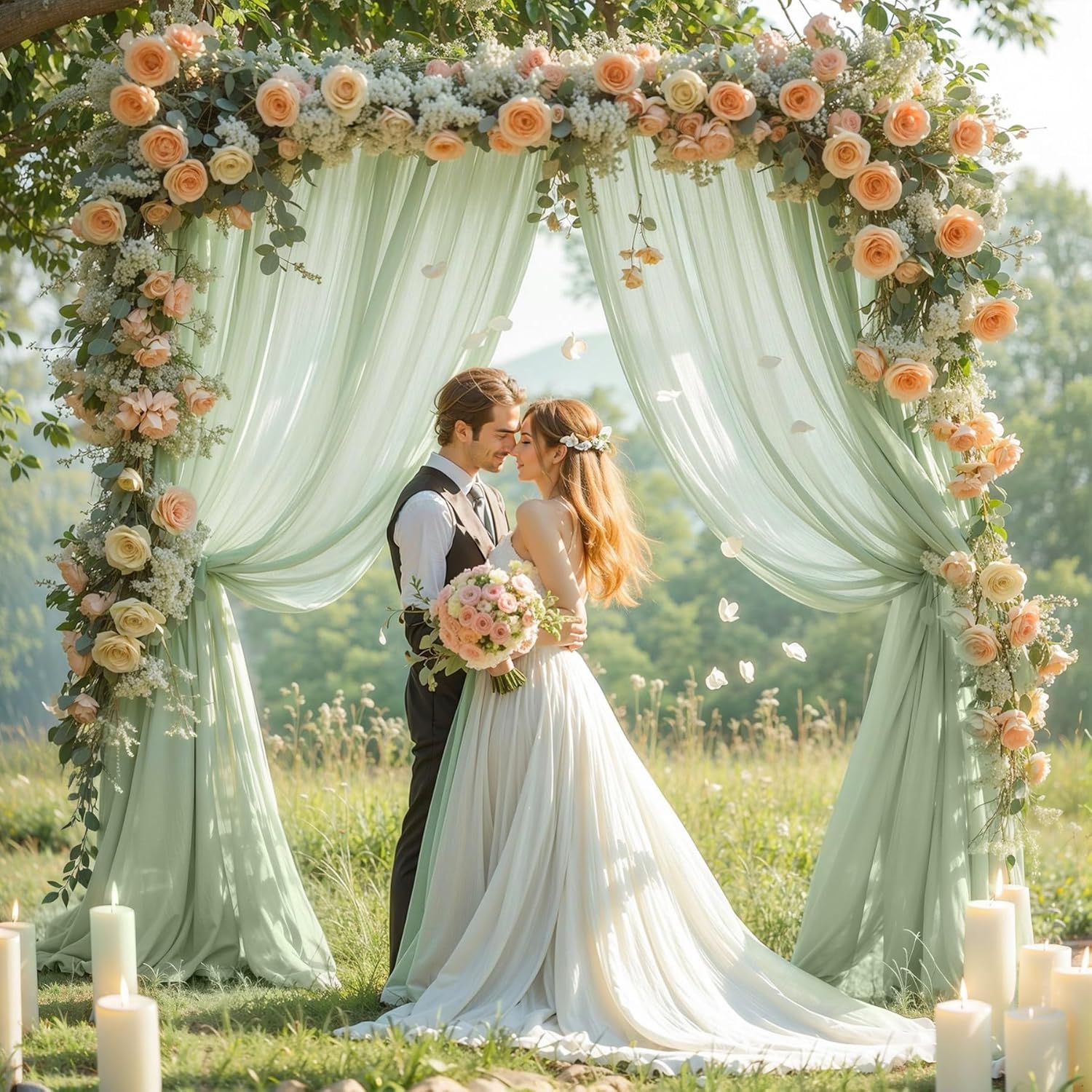 - Chiffon Wedding Arch Curtains: Sheer arch drapes are good choice for your wedding decor. Romantic arch fabric will help to create beautiful folds or leave it flowing loose onto the floor, adding a very delicate, soft touch. Best wedding decoration gift.