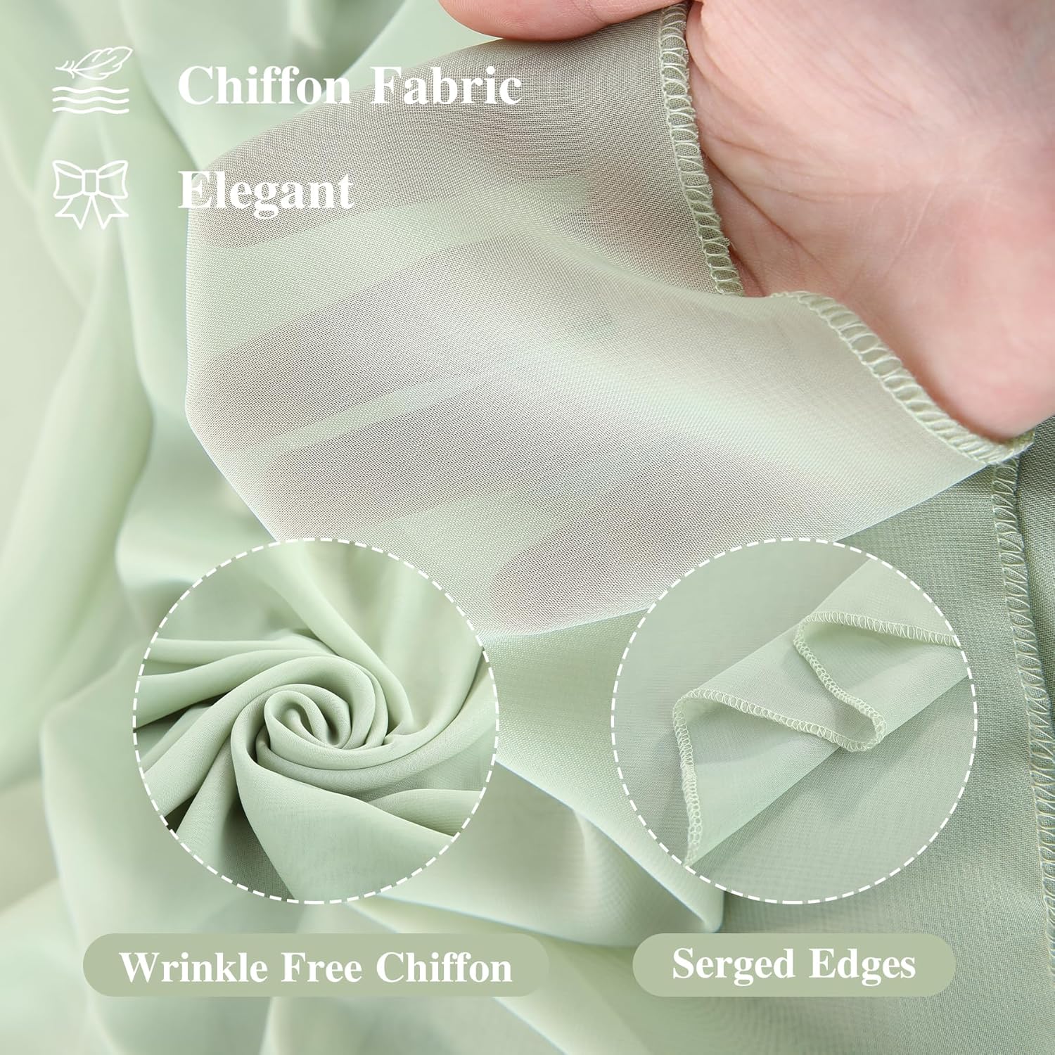 - What You Get: Including 2 panels sage green chiffon wedding arch fabric, each panel is 29" wide by 6 Yards (216 inches) long. Voile sheer chiffon draping fabric are good choice to decorate your wedding arch arbor.