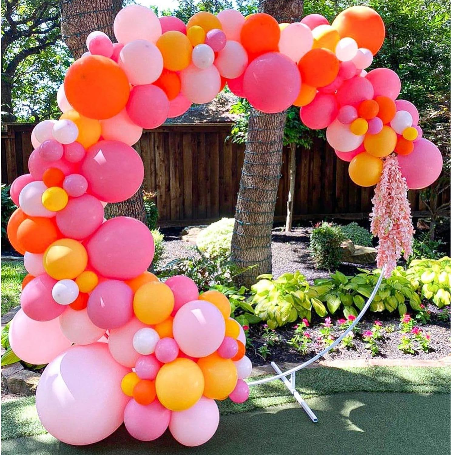 - Mixed Balloons Set: The 12 inch pink and orange balloons set includes 12pcs matte hot pink balloons, 12pcs pastel pink balloons, 12pcs matte yellow balloons, 12pcs matte orange balloons, 12pcs white balloons, 2 roll of ribbon. 62pcs in total. A variety of latex balloons are suitable for your beautiful art theme decoration.