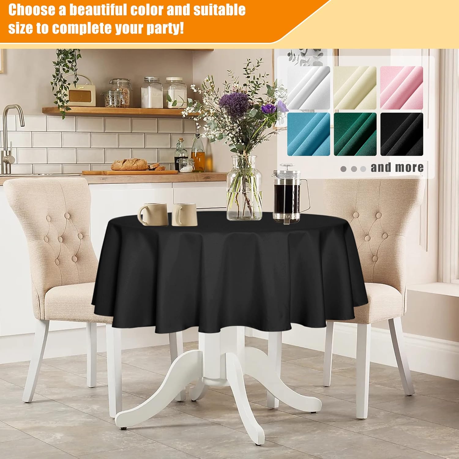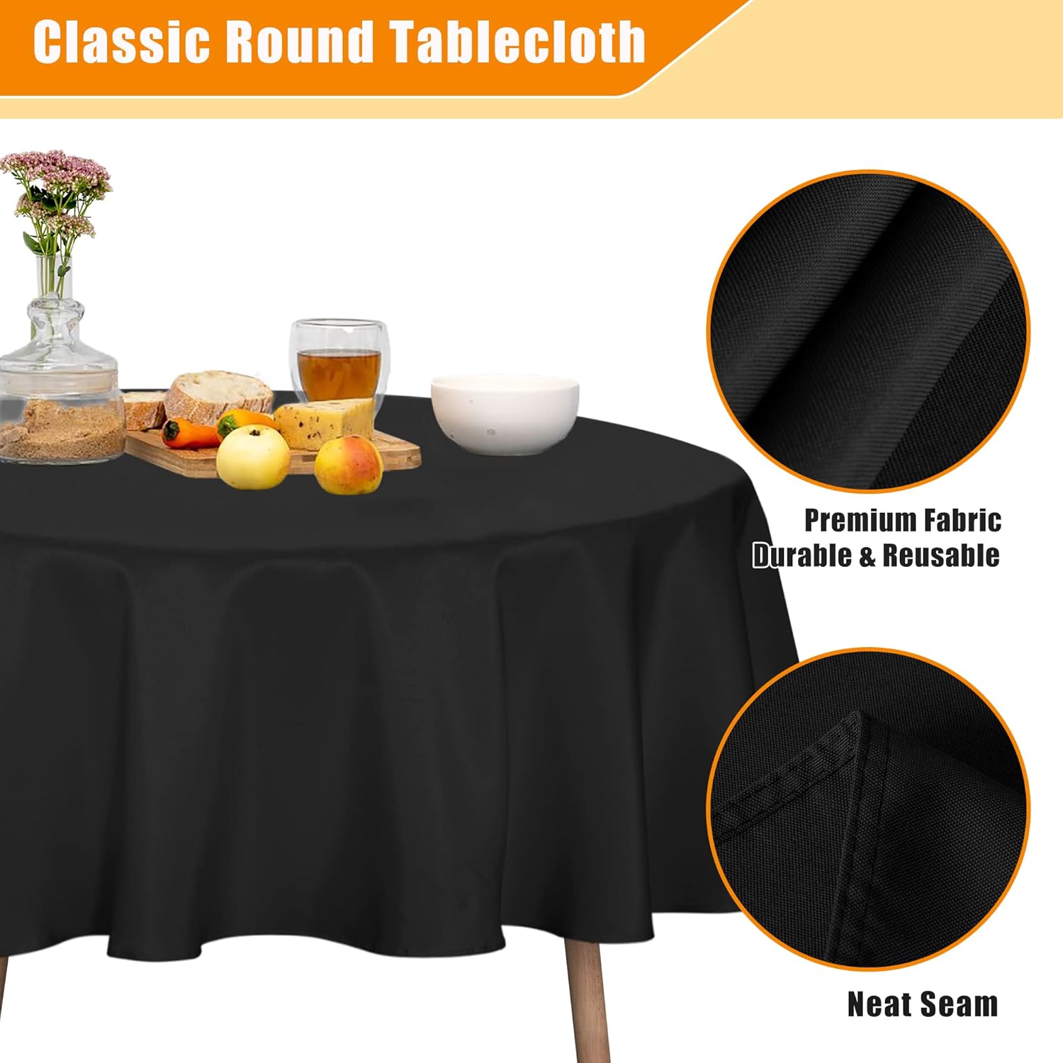 Fitable Black Round Tablecloth 70 inch, Stain and Wrinkle Resistant Washable Polyester Table Cloth for Dining Buffet Parties and Camping