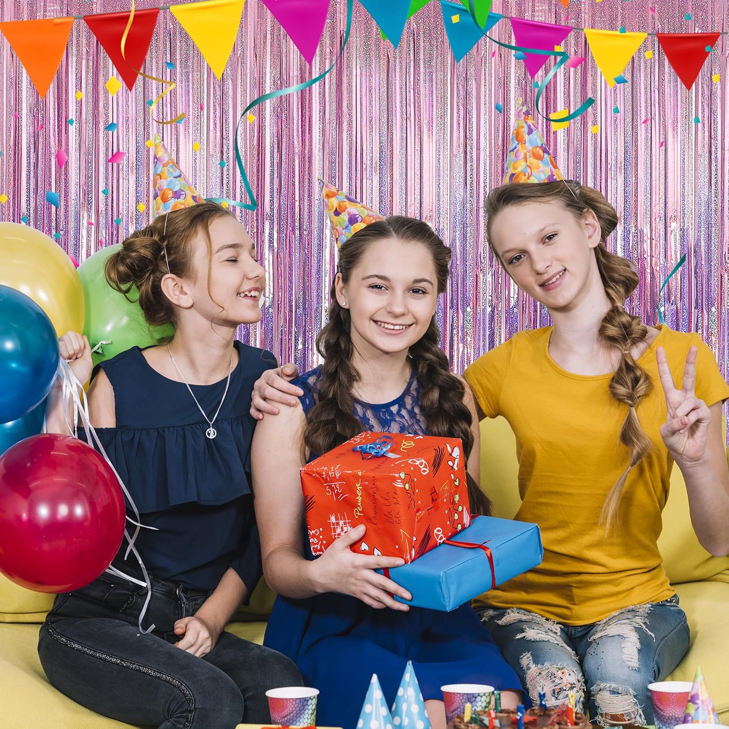 Crosize 3 Pack 3.3 x 9.9 ft Pink Foil Fringe Backdrop Curtain, Streamer Backdrop Curtains, Streamers Birthday Party Decorations, Tinsel Curtain for Parties, Galentines Decor, Preppy, Photo Booth