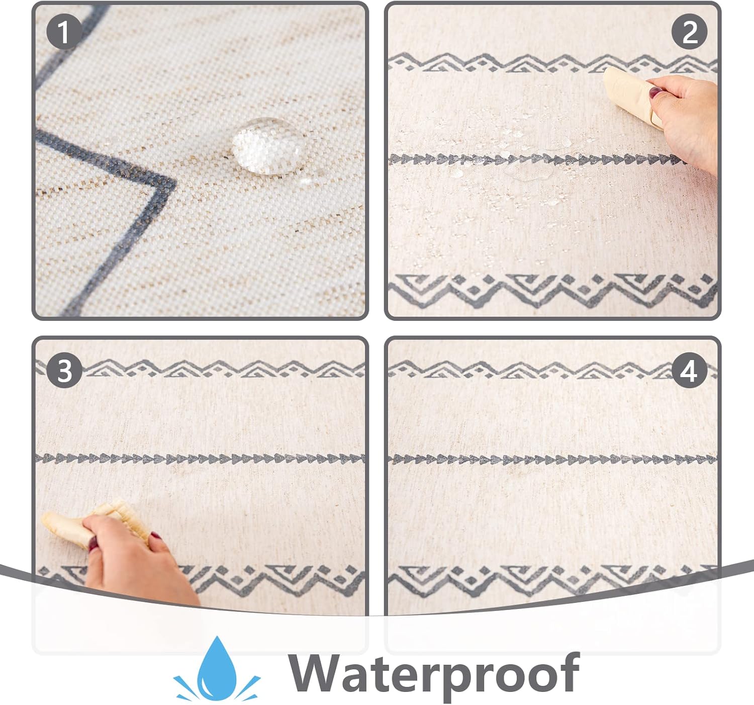 MYSKY HOME Boho Rectangle Tablecloth 60x84 Inches Linen Fabric Oblong Table Cover Farmhouse Decoration Waterproof Classic Bohemian Tablecloth for 4 Feet Table, Indoor and Outdoor Use, Grey Tablecloth