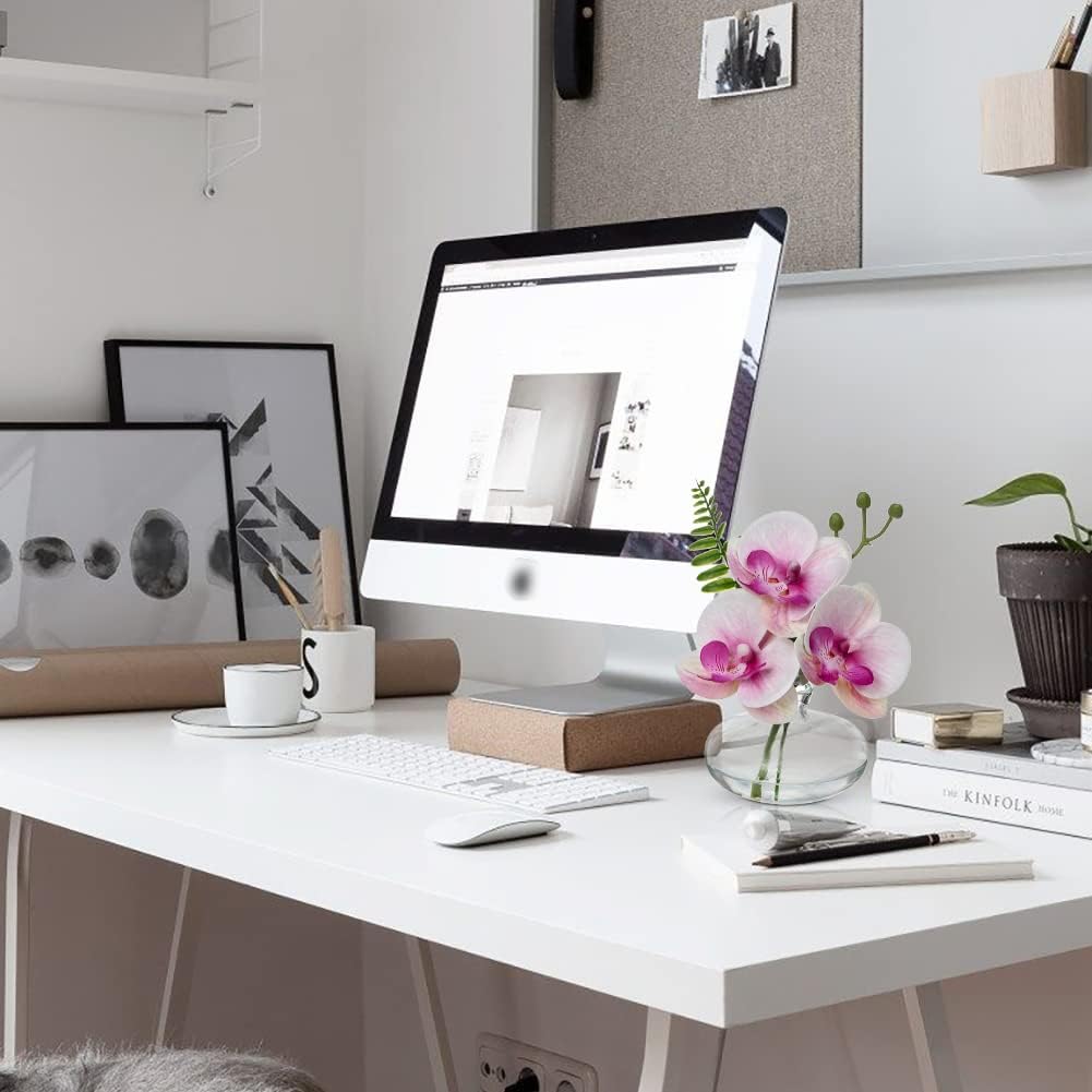 - 【Artificial Orchids for Home Decor Indoor】: This silk orchid flowers in full bloom that brings elegant and magnificence into any space. It is a perfect decoration to your office, shelf, bathroom, living room, bedroom, window, table centerpieces, dining room, cabinet, desk, kitchen, foyer, hotel, etc. Its simple and realistic design will match any decor style perfectly