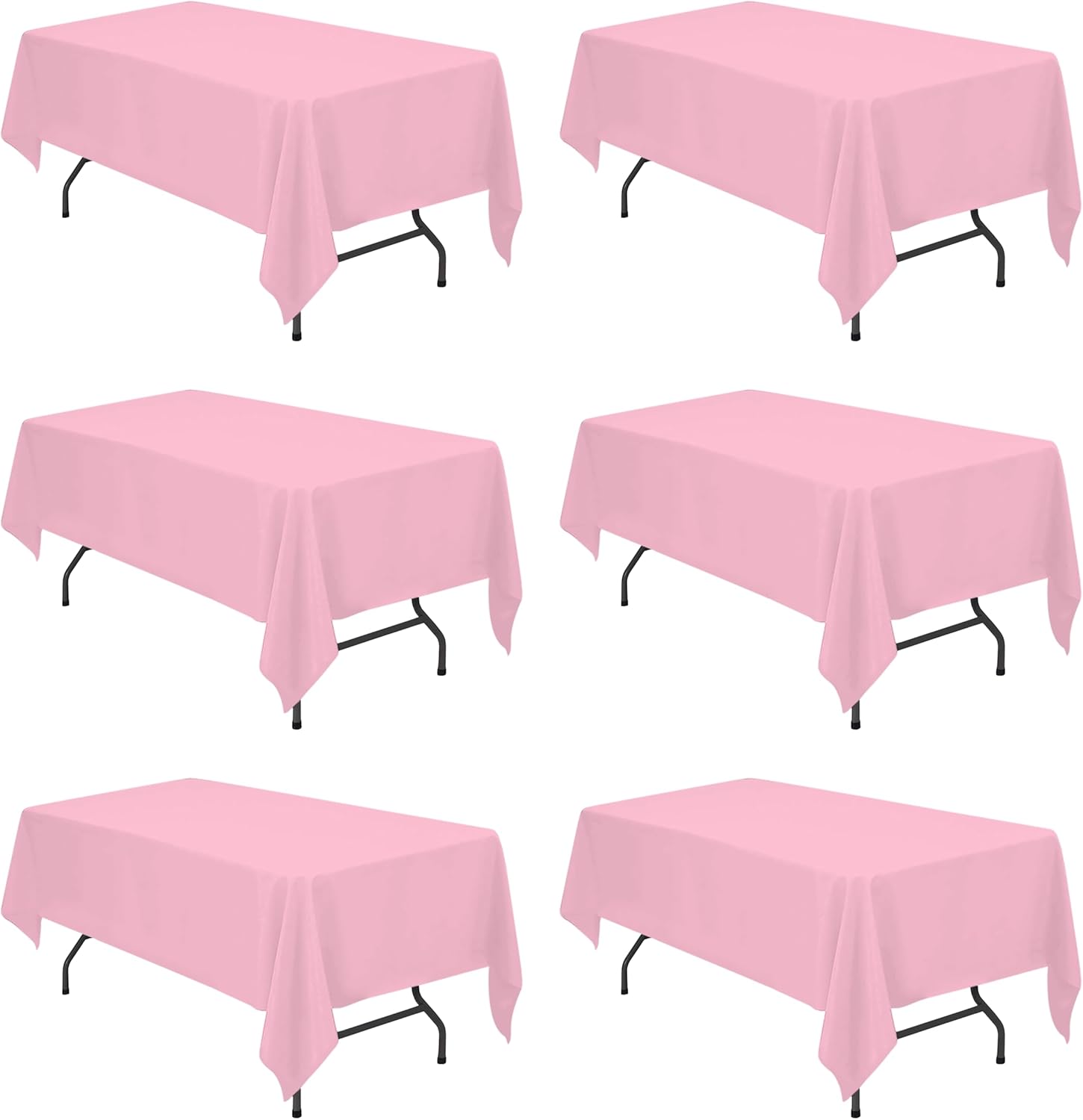 BRILLMAX 6 Pack Pink Tablecloths for 6 Foot Rectangle Tables 60 x 102 Inch - 6ft Rectangular Bulk Linen Polyester Fabric Washable Cloth Cover for Wedding Reception Banquet Birthday Party