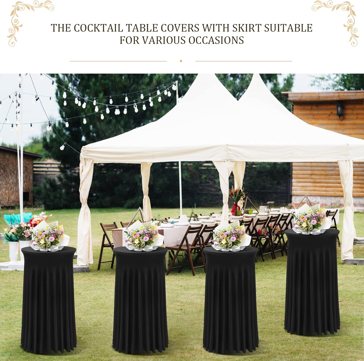 - Easy to Install - All you need to do is put the tablecloth on, and you can set the cocktail table tablecloth by making simple adjustments. You can also use a ribbon to tie the table skirt to dress up your party more elegantly