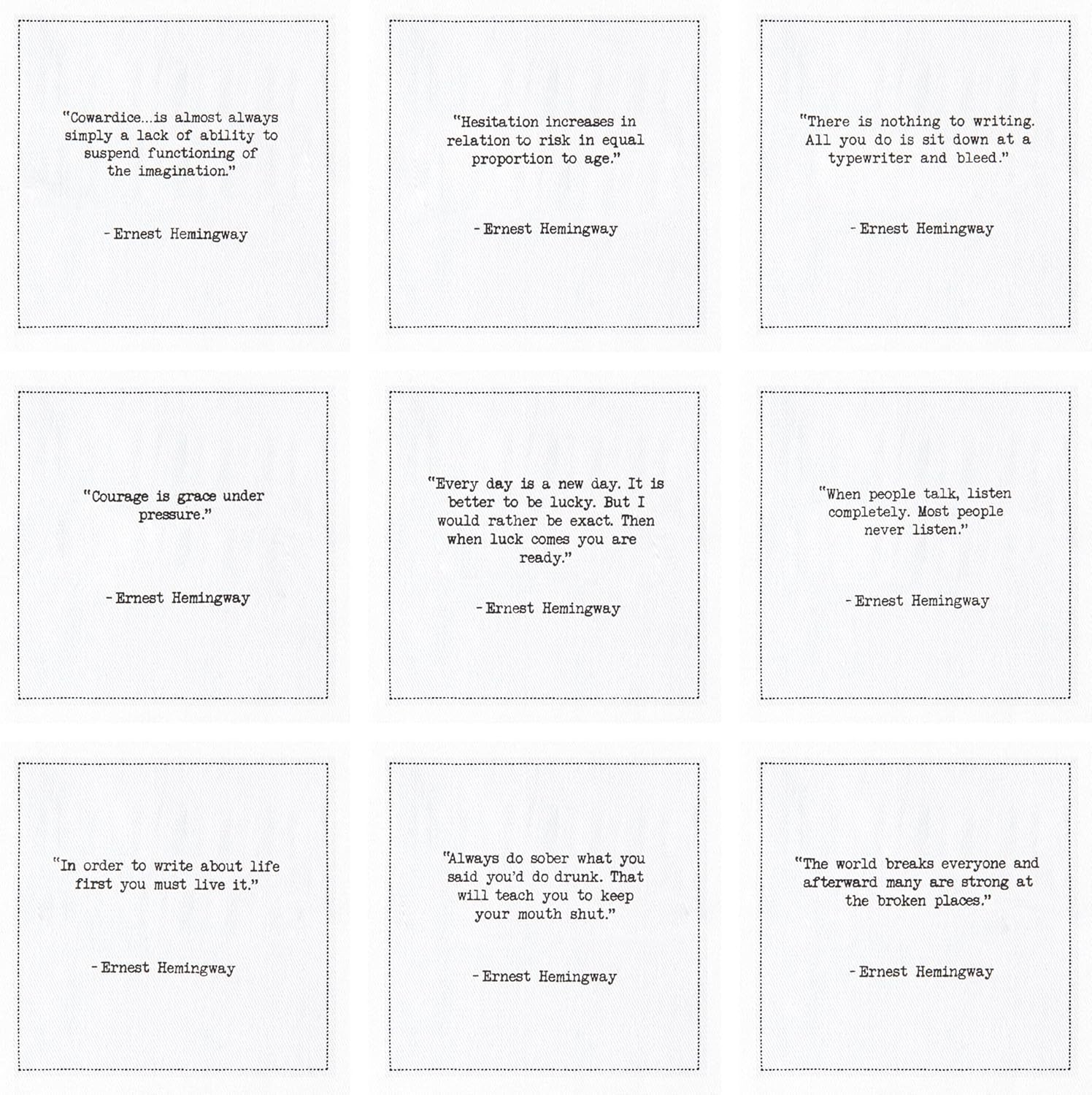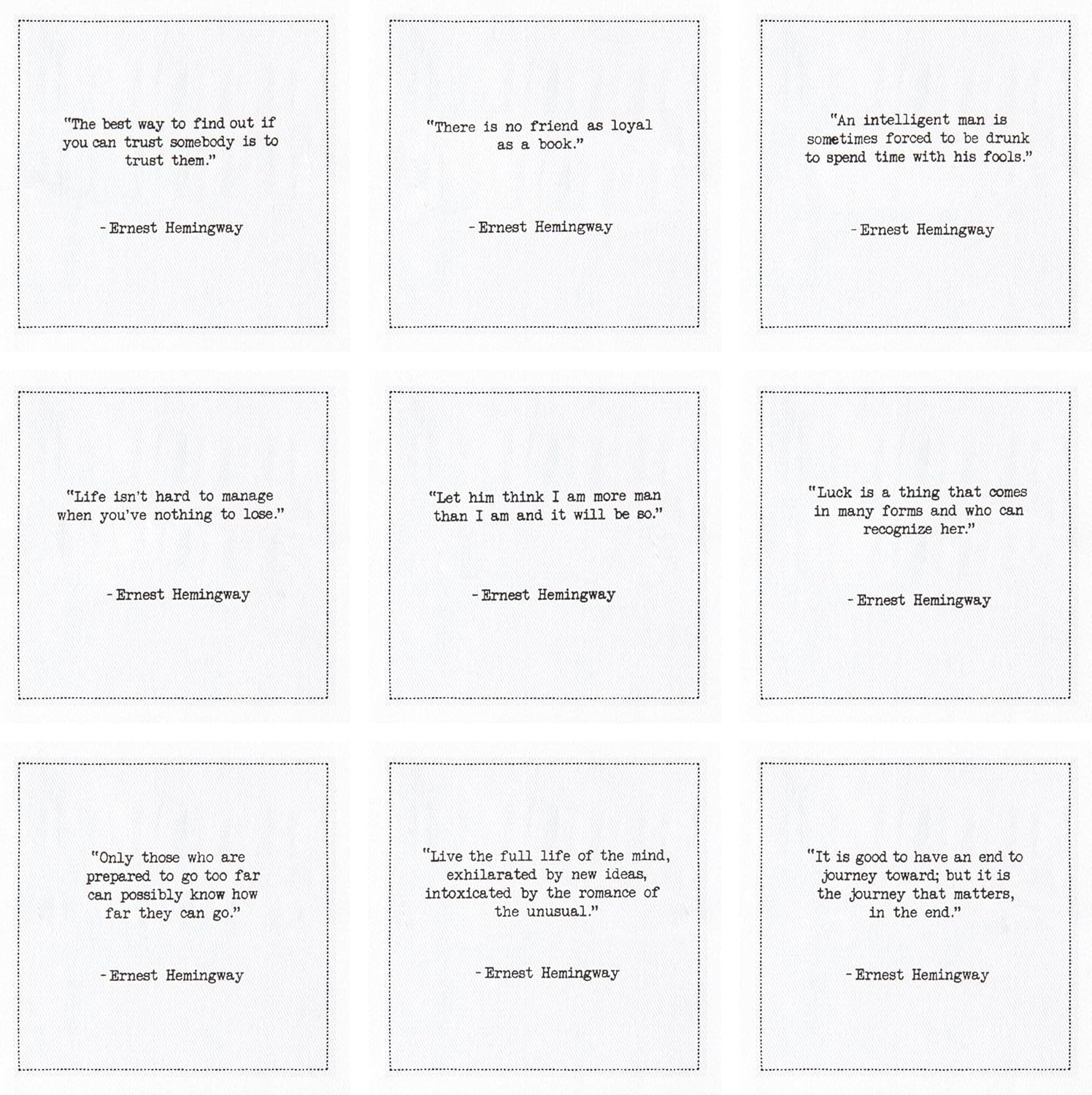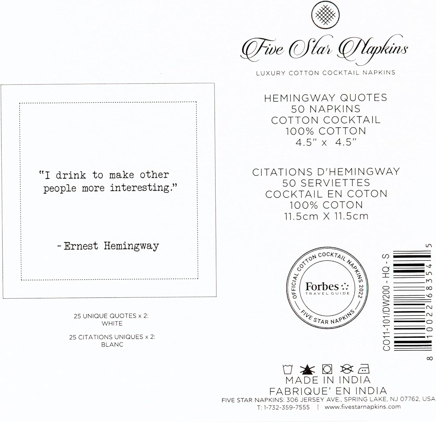 Five Star Napkins Hemingway Quotes, White Cotton Cocktail Napkins, Beverage Napkins, Bar Napkins, Cloth Napkins, Party Napkins, Events, Holidays, Weddings, Birthdays, Disposable, 4.5" x 4.5"- (50x)