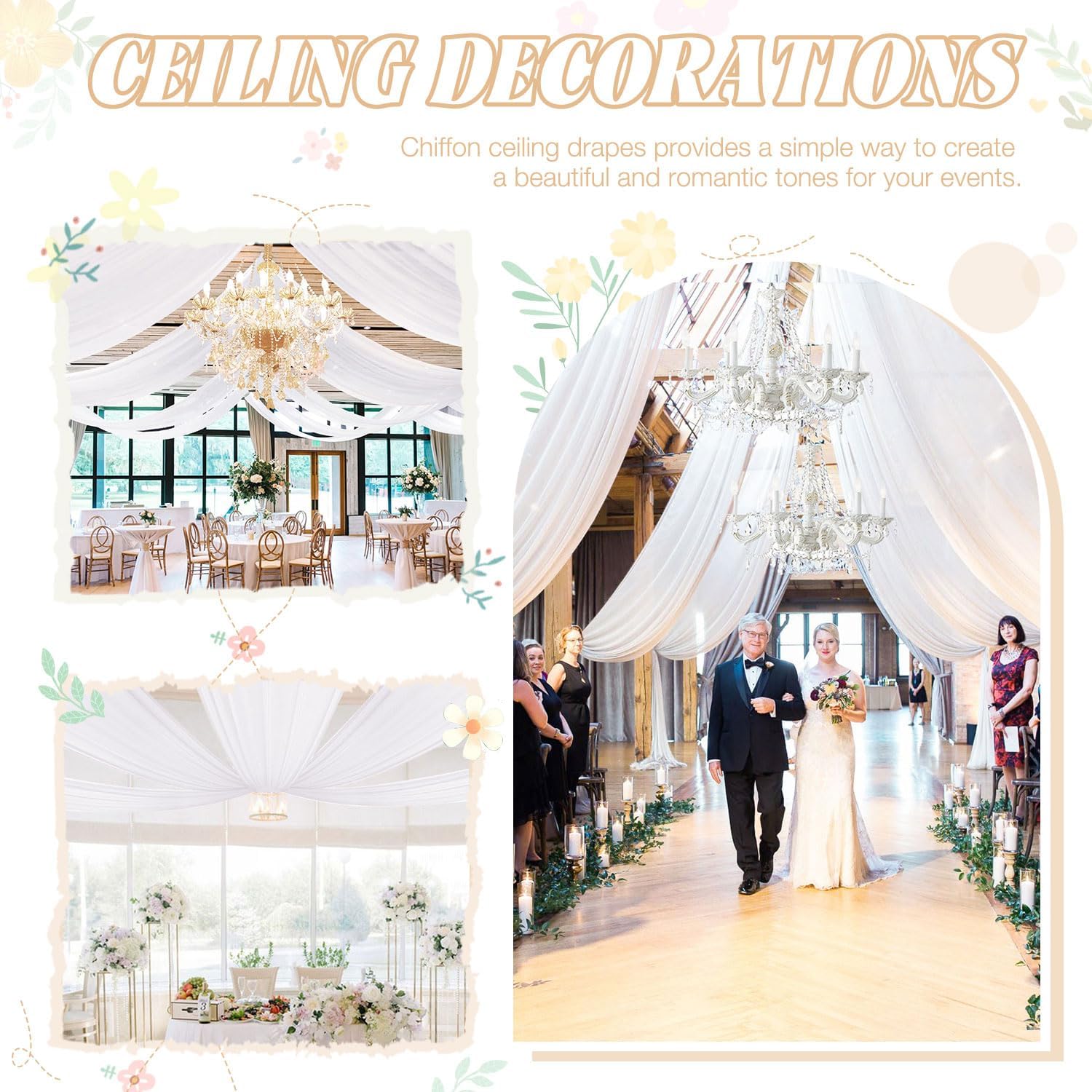 FUHSY White Ceiling Drapes for Wedding Arch Draping Fabric 4 Panels 5x20FT Chiffon Wedding Arch Drapes Sheer Bed Canopy Curtains Wedding Backdrops for Reception Ceremony Swag Arbor Archway Tent Drapes