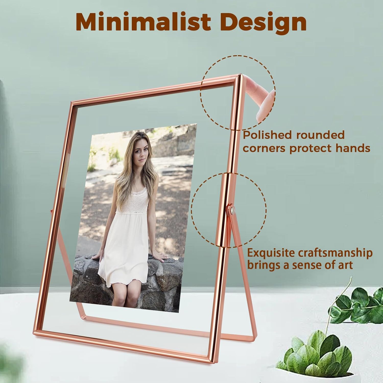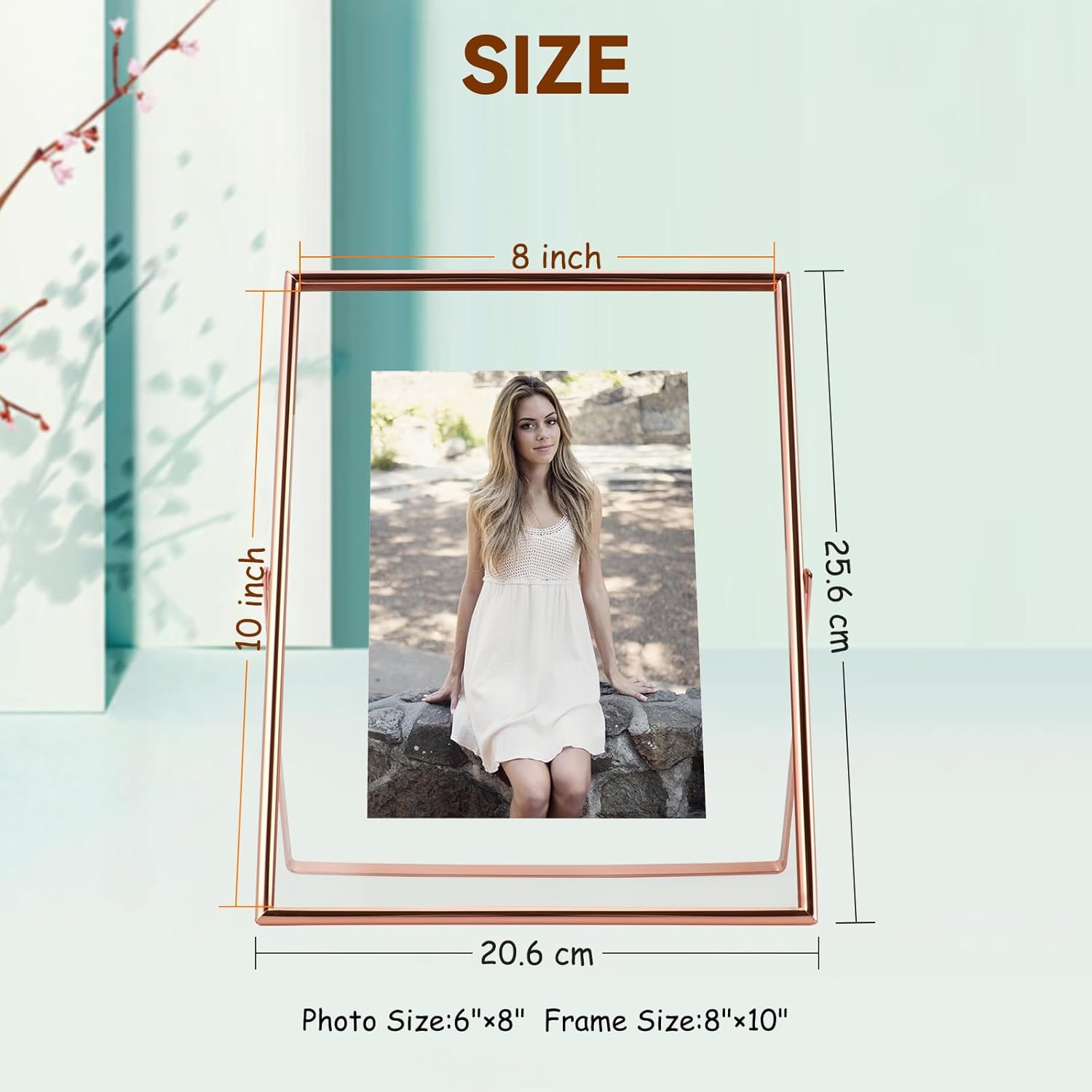 Rose Gold Floating Frame, 8"x10", Vertical, For Picture 7x9, 6x8, 5x7, Tabletop Shelf Photo Frame For Lady or Girl, Classy Gift For Anniversary, Wedding, or Birthday