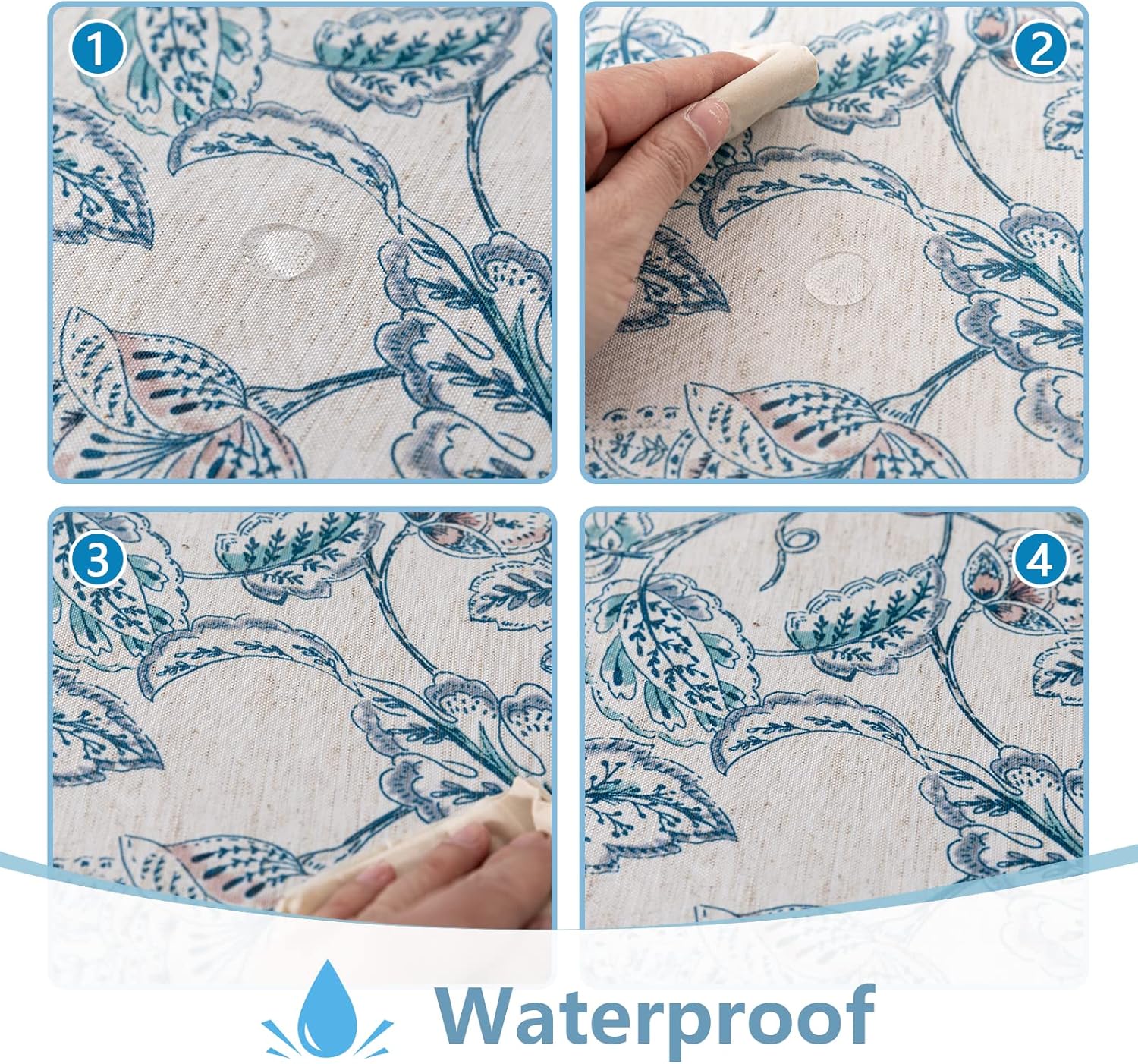 MYSKY HOME Waterproof Tablecloth Rectangle 60x102 Inch Rustic Burlap Tablecloth Spring Floral Linen Table Cover Farmhouse Decoration Rectangle/Oblong for Holiday, Dinner, Indoor and Outdoor Use, Blue