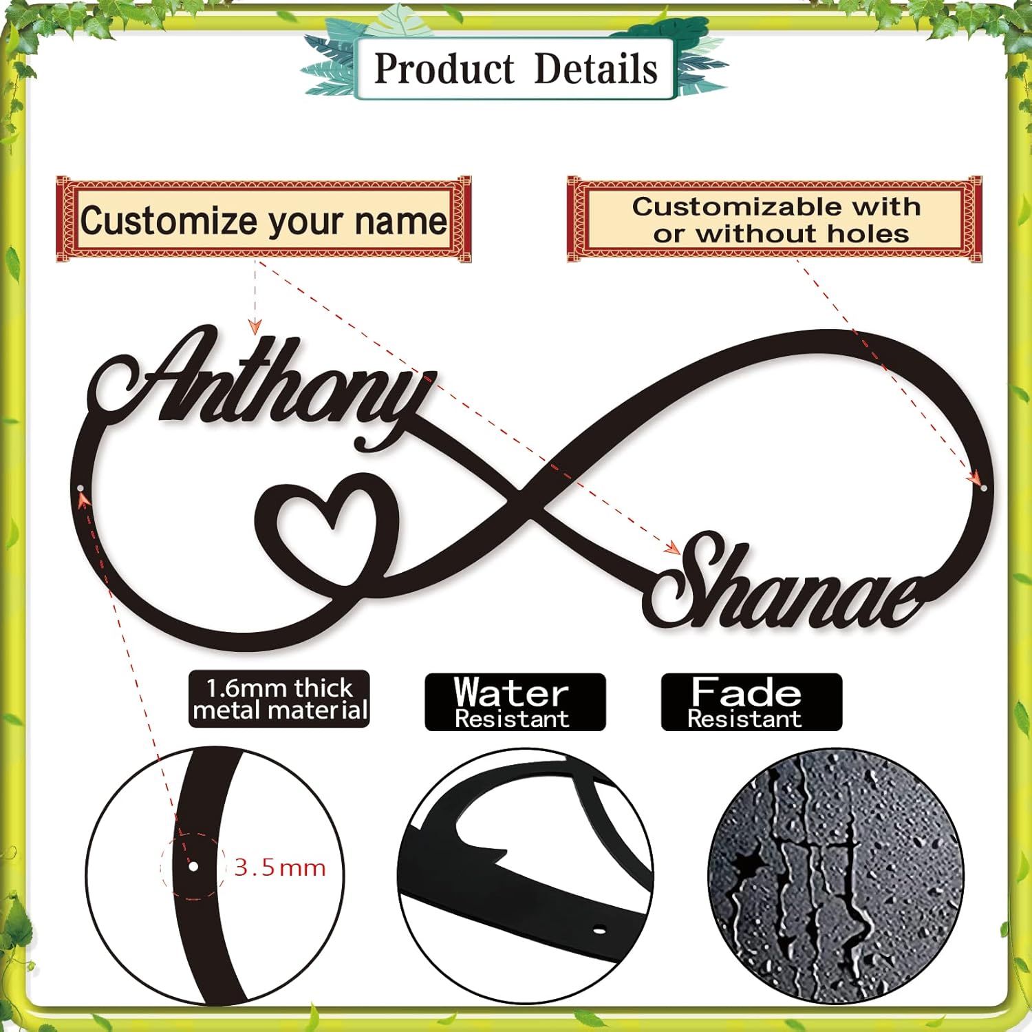 - Personalized Heart Design: Celebrate love with a customizable metal sign featuring intertwined names and a heart-shaped motif, perfect for showcasing special relationships.