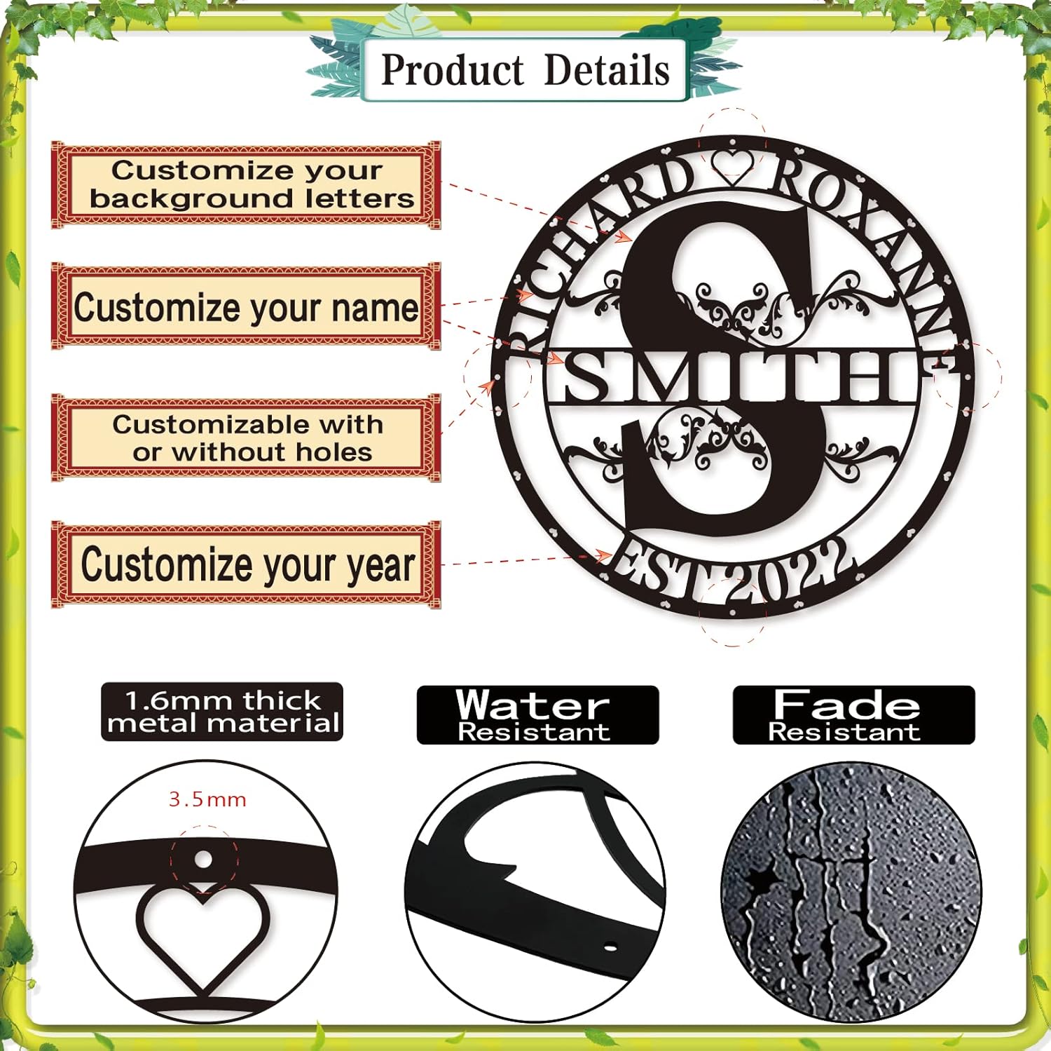 - π Great Service - Our metal outdoor name sign can be produced quickly. If your metal custom name signs are damaged or incorrect for any reason, please contact us with a picture of the item and we will happily work with you to provide a replacement!