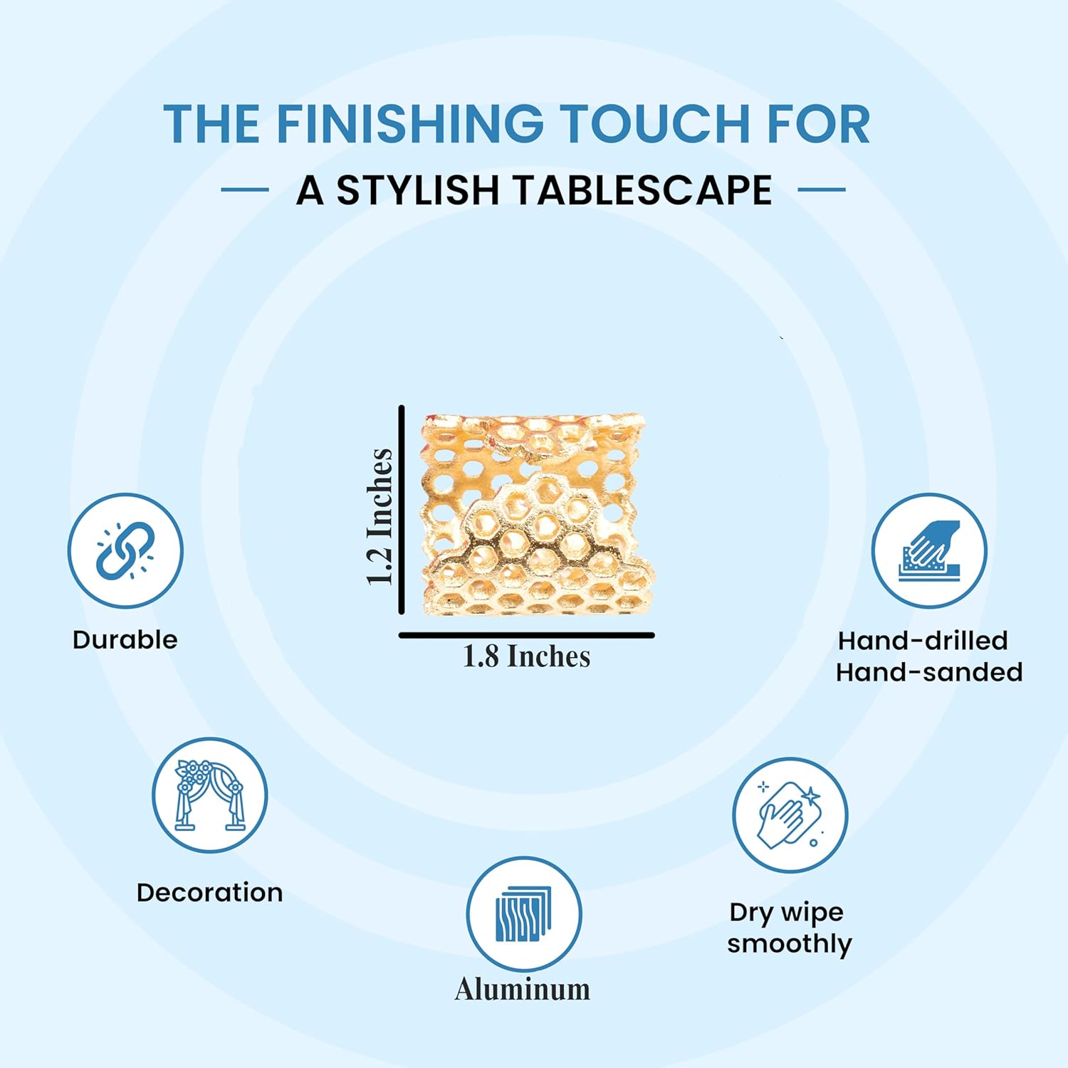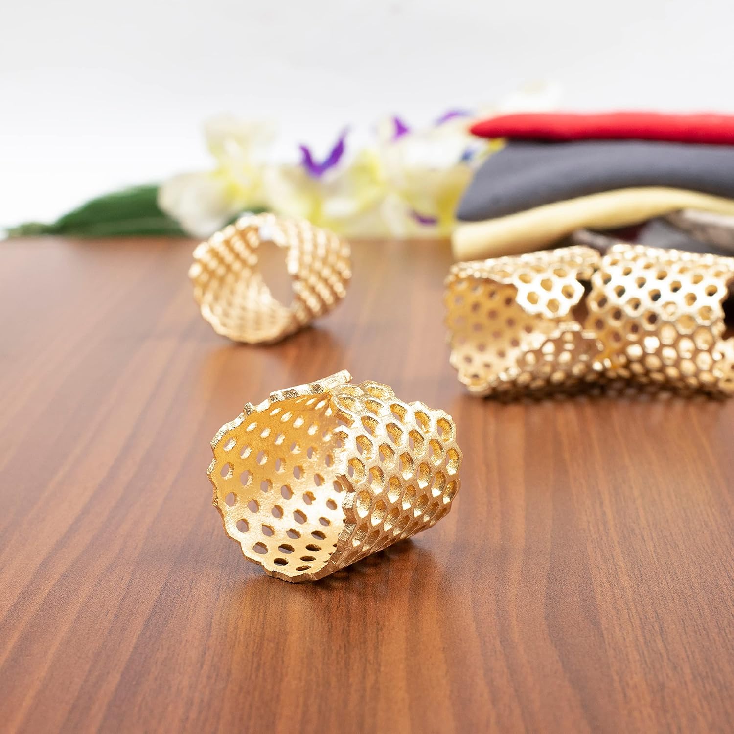 Gold Honeycomb Napkin Rings Set of 10 - Elegant Lightweight Metal Serviette Holders for Dining Table, Wedding, Party & Home Décor - CLEENTABLE