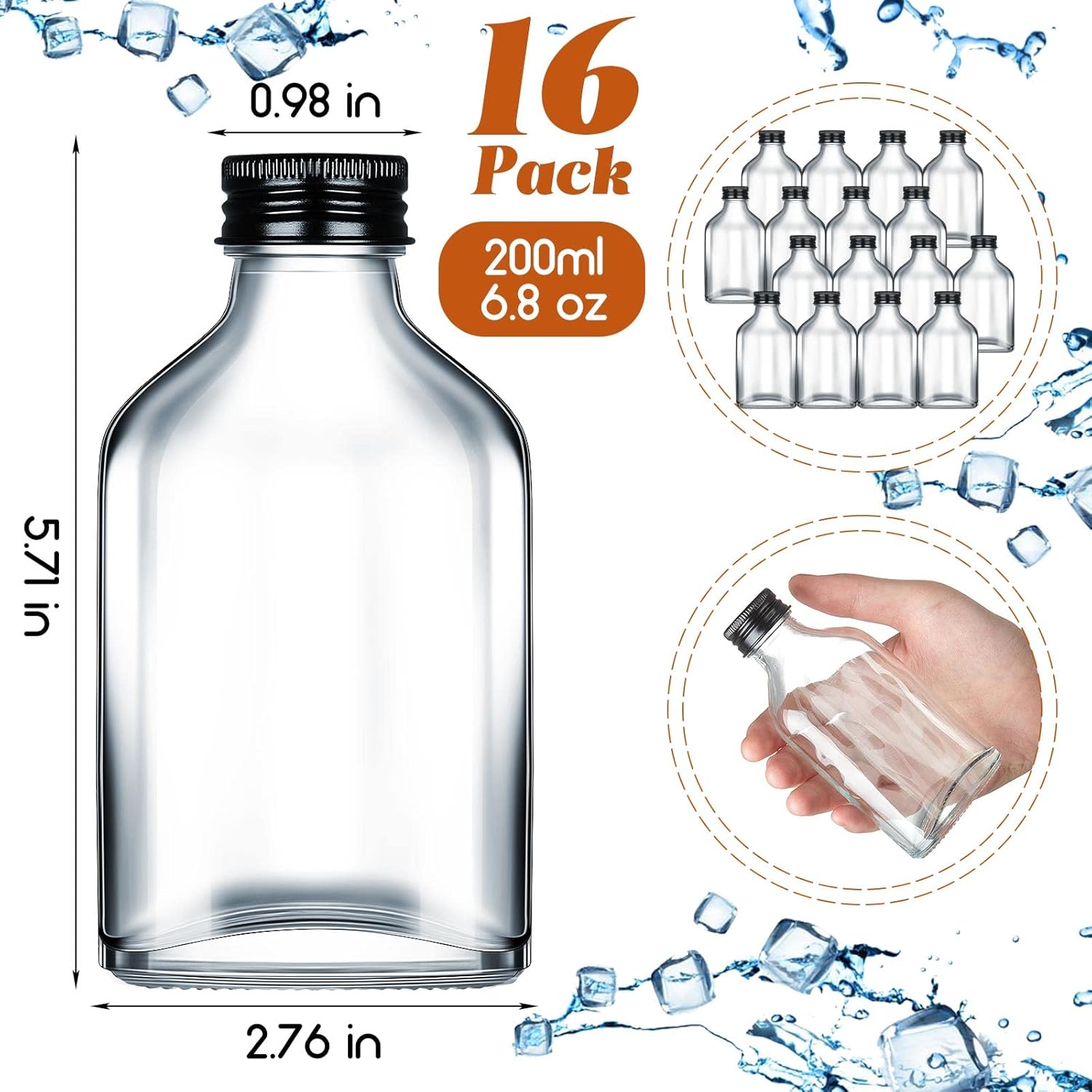 - Reasonable Capacity: each mini shot bottle measures 5.71 inches/ 14.5 cm in height, the topper diameter is 0.98 inches/ 2.5 cm, the bottom is 2.76 inches/ 7 cm in diameter, and the capacity is 200 ml/ 6.8 oz, compact size is easy to meet your travel needs