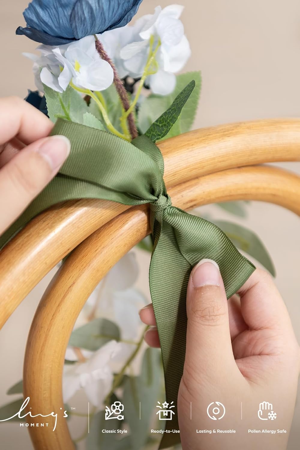 - WEDDING AISLE DECOR DETAILS: 8 pcs pre-made fake aisle marker pew flowers and 8 double-color ribbon card sets, which helps to create your romantic spring/dusty blue and navy/summer wedding. Aisle suitable for four rows of guest seating. If there are more queues, it is recommended to purchase multiple copies.
