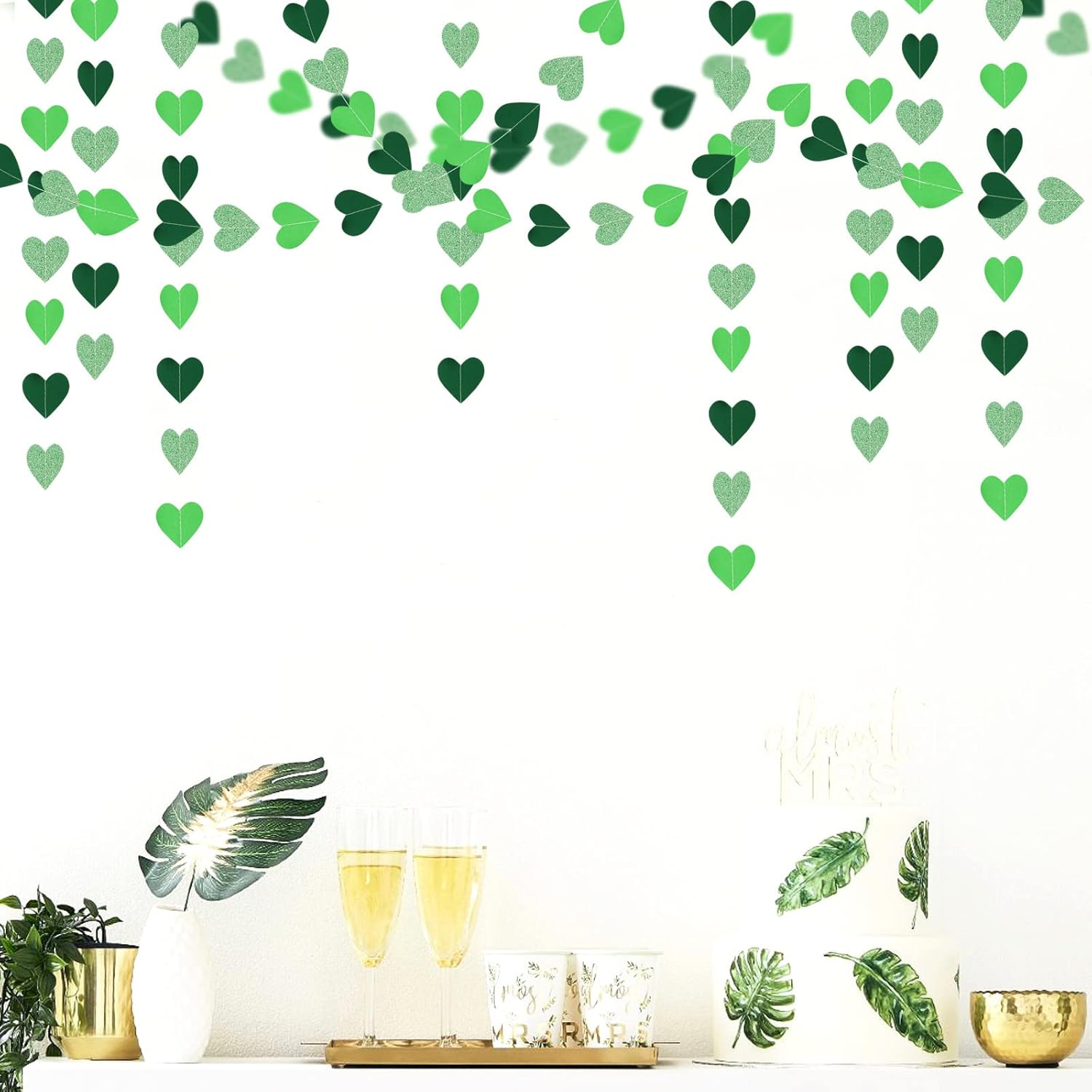 Green Party-Decorations Heart Paper-Garland Streamers-Banner - 52Ft St Patricks Day Decorations, Spring Summer Birthday Wedding Engagement Baby Shower Hanging Decor Ouruola