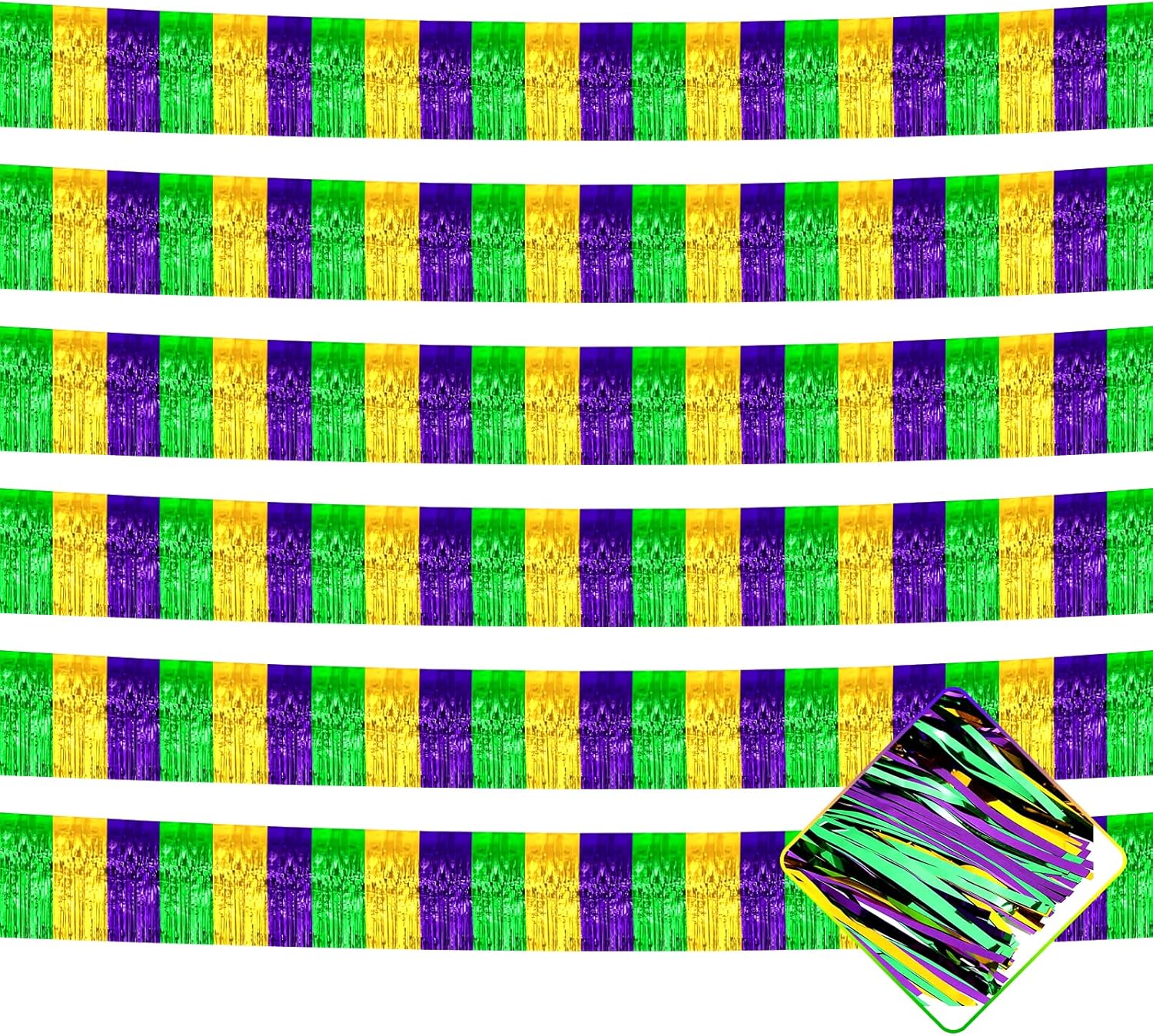 10 Pack 10 Feet Mardi Gras Foil Fringe Garland Metallic Tinsel Streamers Banner Wall Hanging Backdrop for Parade Floats, Bachelorette, Wedding, Birthday, Carnival Party Decorations(Gold Green Purple)