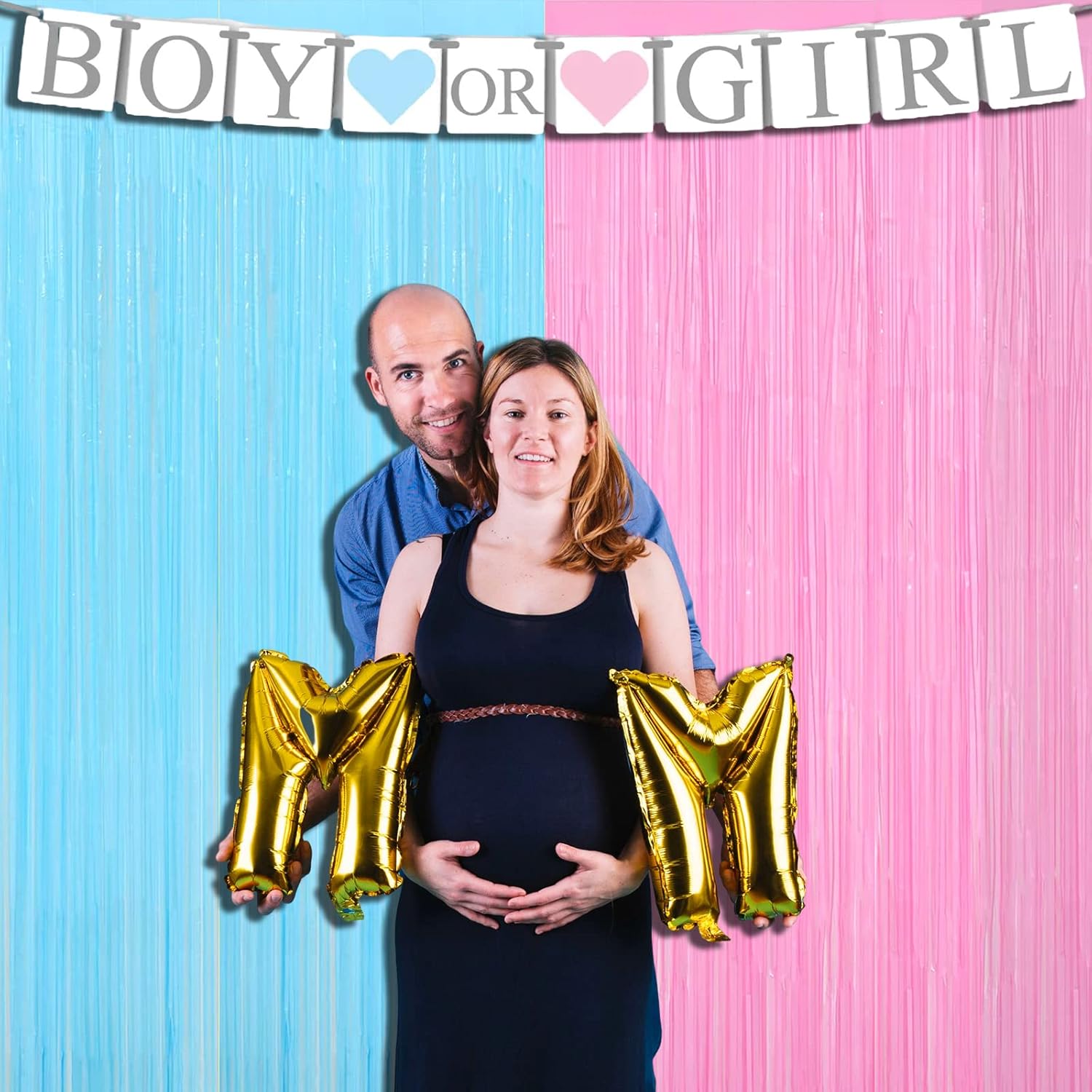 4 Pack Macaron Pink Blue Foil Fringe Curtain Backdrop, 3.28Ft x 8.2Ft Metallic Tinsel Foil Fringe Streamers for Photo Booth, Wedding Gender Reveal Backdrop Boy or Girl Birthday Party Decoration