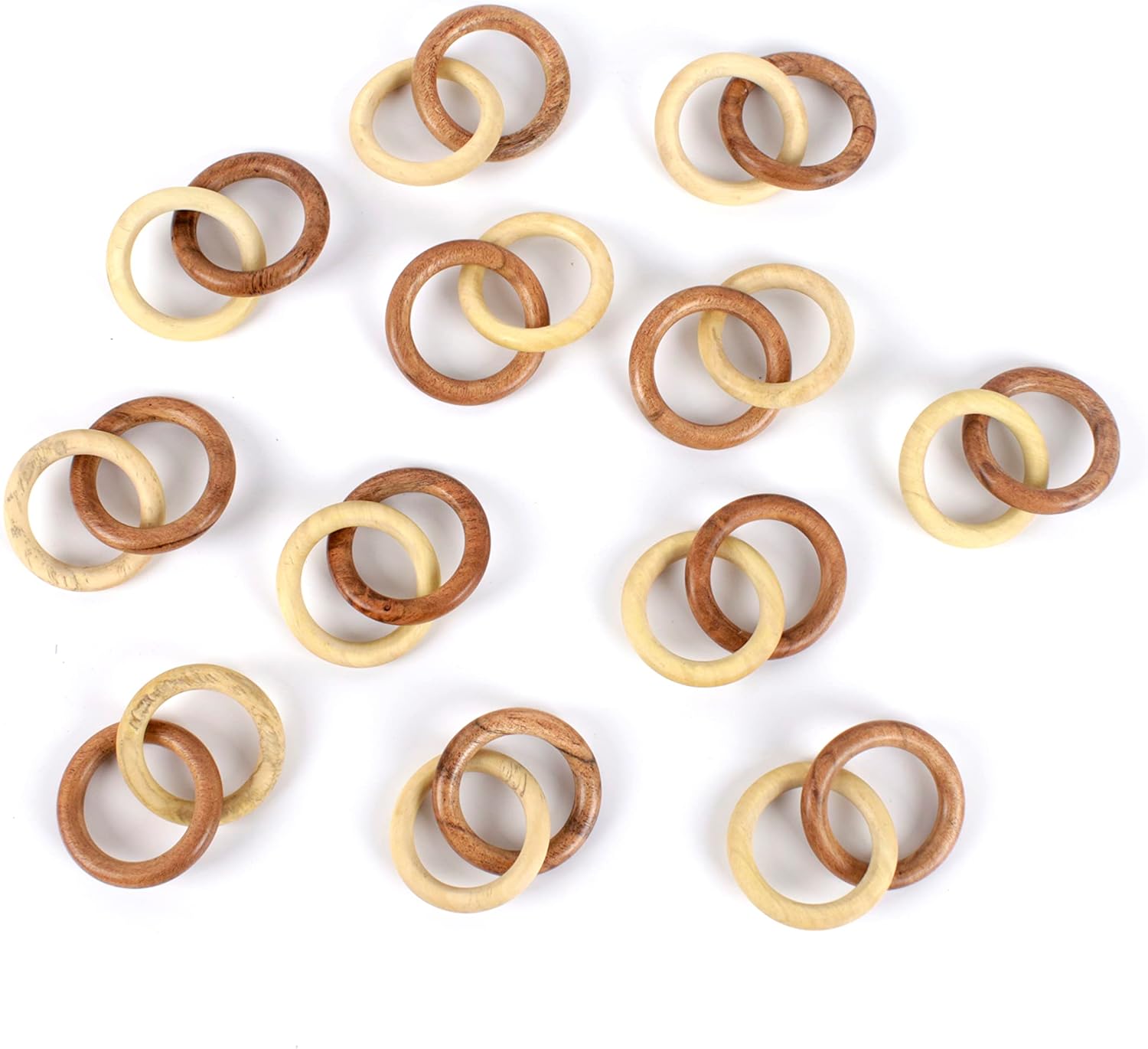 Farmhouse Napkin Ring Set of 12 - Wooden Napkin Holders for Dining Table, Everyday Use, Thanksgiving, Holiday, Christmas, Festive, Party, Gift, Décor (Shades of Brown) - CLEENTABLE