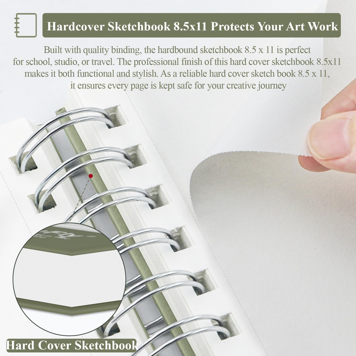 - 【sketchbook 8.5x11] - Our set of loose sketchbook features a robust and sturdy hardcover design on the front and back, making the artist sketchbook easy to remove and draw whenever inspiration strikes, giving sturdy support and protecting your work when use sketchbook for drawing during your daily commute or outdoor travels. The 8.5" x 11" size scetch books for drawing also makes this spiral bound sketchbook easy to store in your backpack or suitcase and enjoy painting anytime, anywhere.