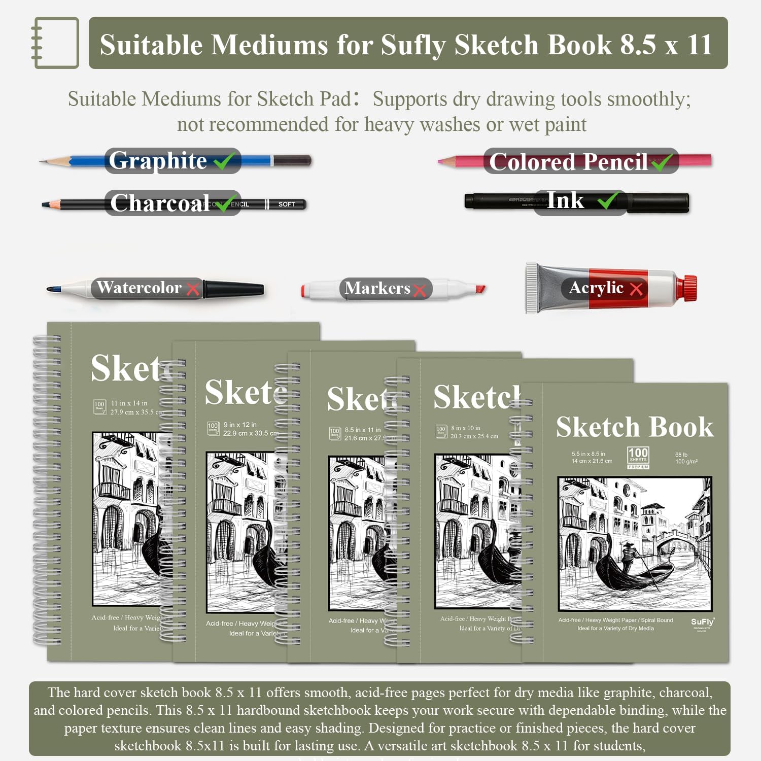 - 【sketch book 8.5 x 11] - PREMIUM MATERIAL SKETCH BOOK - SuFly art sketchbook 8.5 x 11 consists of 100 sheets of high quality acid-none and PH-neutral drawing paper with a thickness of 100 gsm, the sketch pad 8.5x11 is sturdy enough to withstand multiple wipes while maintaining the original roughness of sketch book for kids that allows dry media to grip (such as graphite, charcoal, pencil, etc.), sketch pads for drawing for teens would be a trusted choice for thousands of artists.