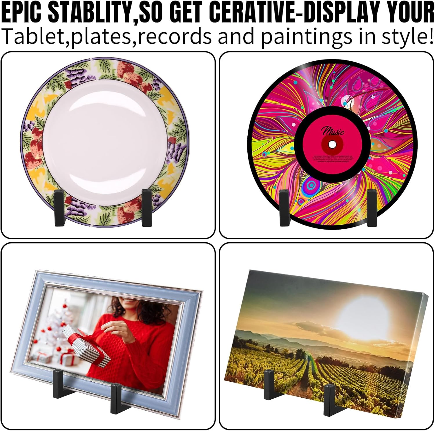 - Enough Quantities: what you will receive are 2 pieces of metal plate holder display stand, designed in matte black color, elegant and classic; Enough quantities and suitable sizes are able to fully meet your use and replacement needs for display in your daily life or exhibition activities