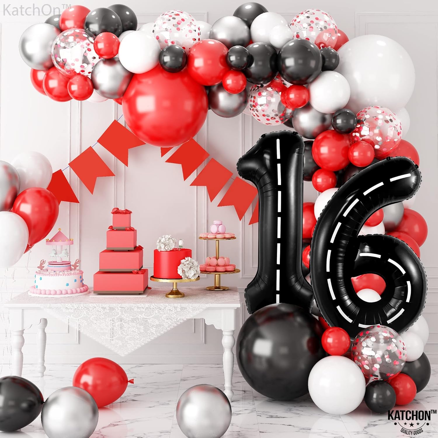 - MAKE A CONFIDENT CHOICE | COMPELETE SATSFACTION - We are very confident with the quality of these 16 decorations birthday boy balloons. if you were not satisfied with 16 year balloons quality for any reason, our customer service team is happy to help you. We care about your experience and good feedback so we personally made sure that youâre going to love and enjoy decorating your event with race car 16th balloon road party decorations. Perfect road number balloons for 16 year old birthday decorations
