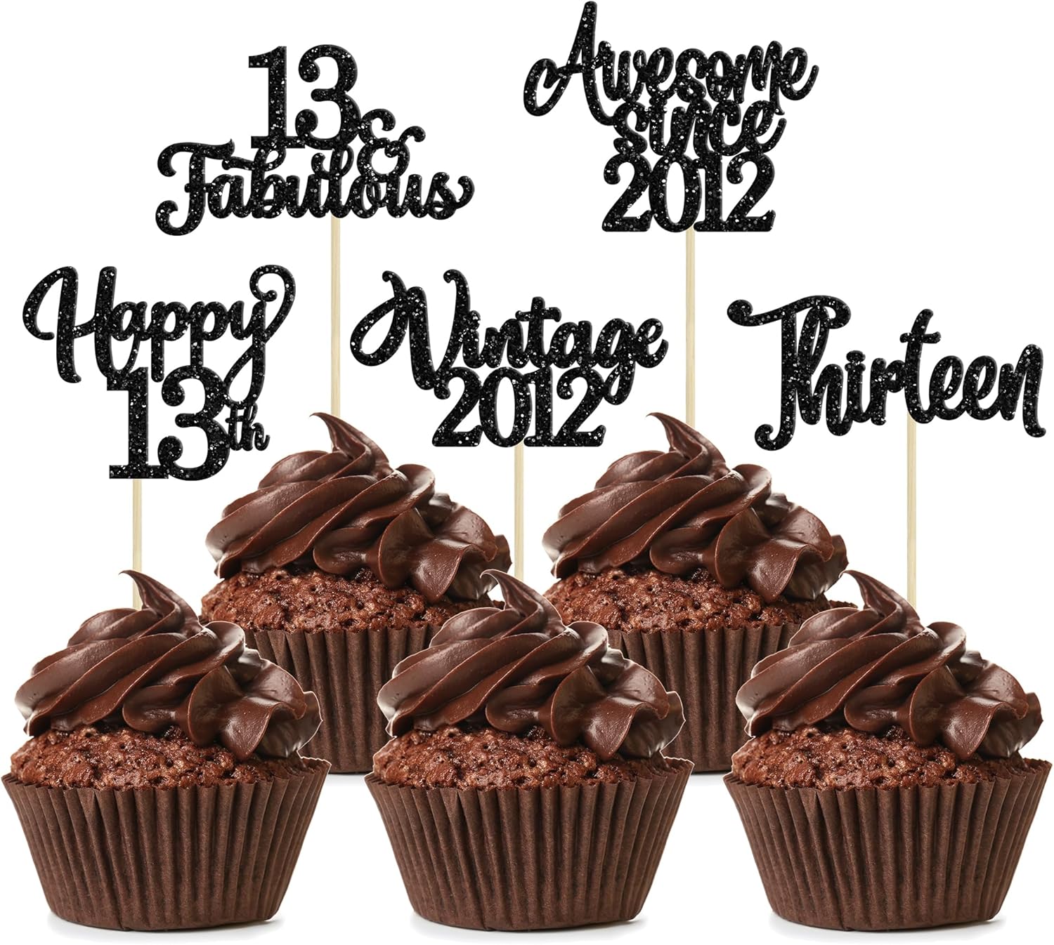 30Pcs Happy 13th Birthday Cupcake Toppers Glitter Thirteen Vintage 2012 Cupcake Picks Cheers to 13 Fabulous Cake Decorations for 13th Birthday Wedding Anniversary Party Supplies Black