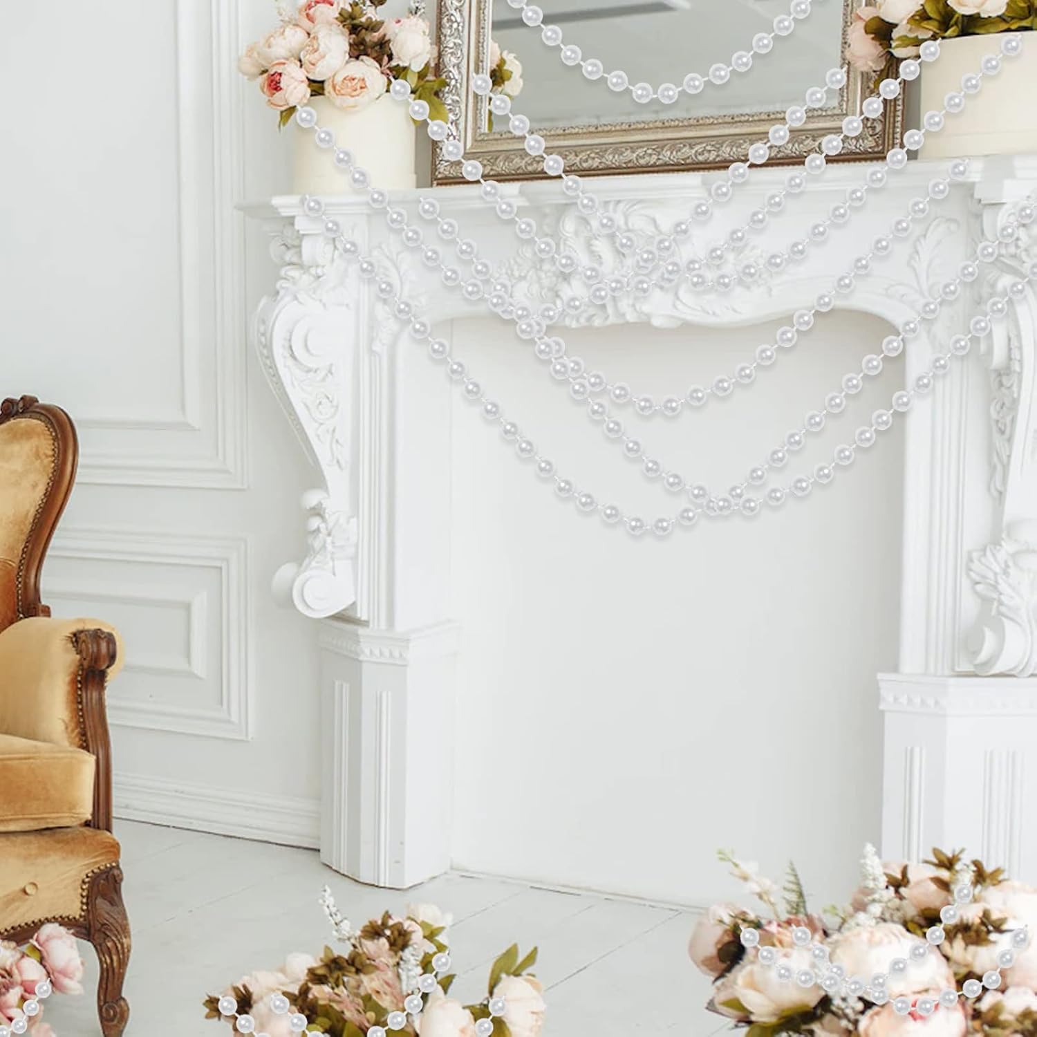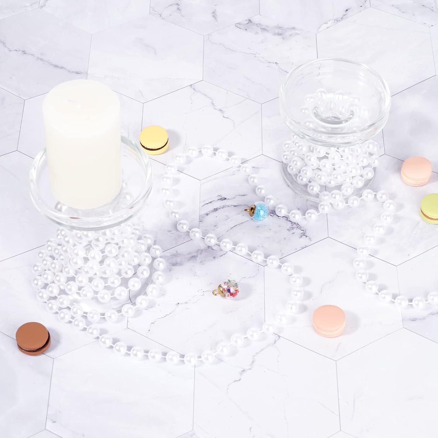 - Faux Pearl Garland: Add the elegance of pearls to your decorations, add sparkle and glamour to your handicrafts with this pearl garland