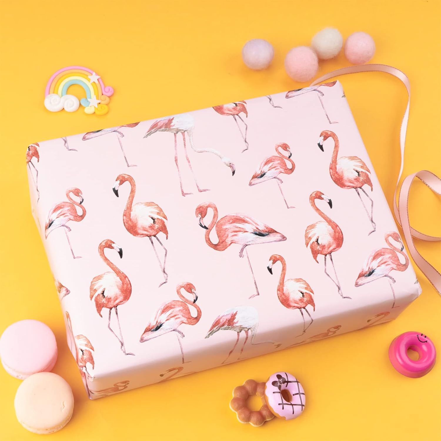 - REVERSIBLE: Adorable flamingo printed on one side, pink and white polka dots printed on the reverse. Two different designs make unique and varied gift presentations easy