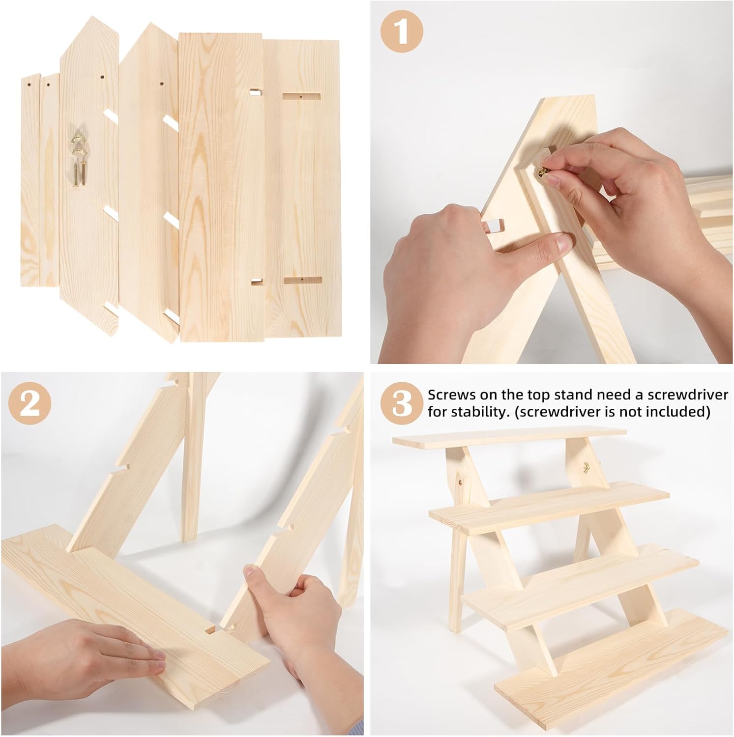 ZYP 4 Tier Wood Cupcake Display Stand,Retail Cookie Display Riser,Rustic Tiered Table Display Stand for Vendors Home Wedding Party,Nature