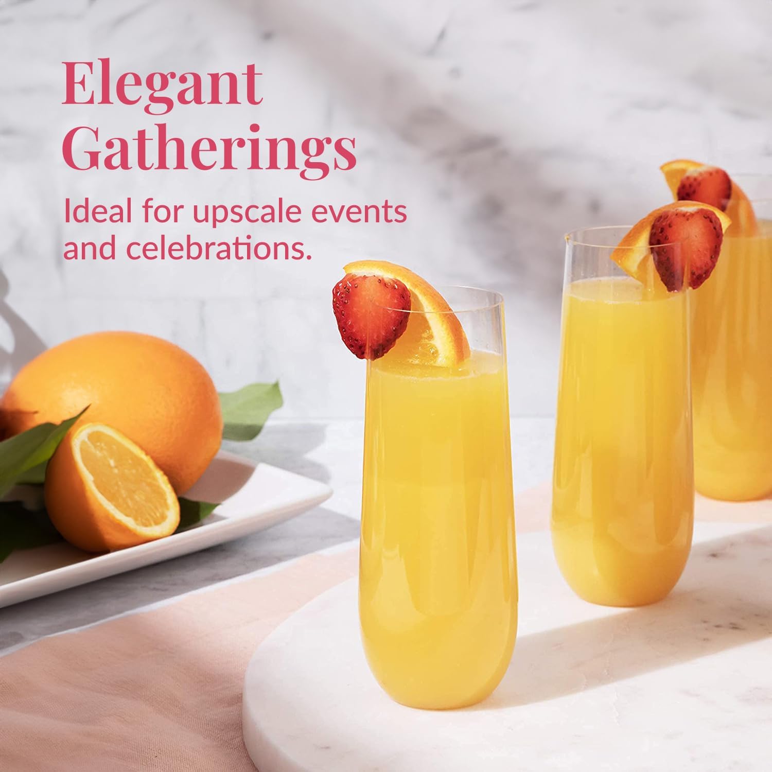 Prestee 48 Pack Plastic Champagne Flutes 9 oz - Stemless Disposable Champagne Flutes for Cocktails Mimosa Bar and Party Supplies - Clear Shatterproof Plastic Wine Glasses for Wedding and Summer Party