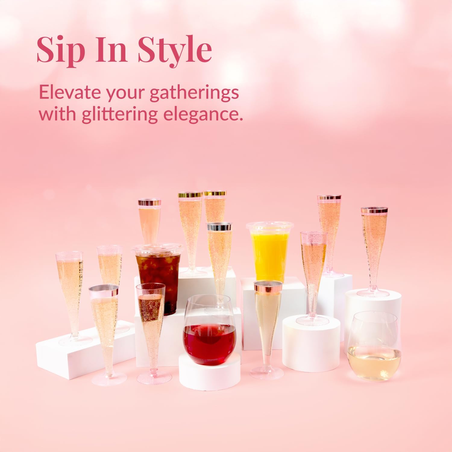 - LARGE SUPPLY: Every bulk pack comes with 200 amazing disposable champagne glasses to accommodate even the largest gatherings. Keep your plastic stemware at home for your own personal use, so you can sit back and relax with your favorite beverage with style.