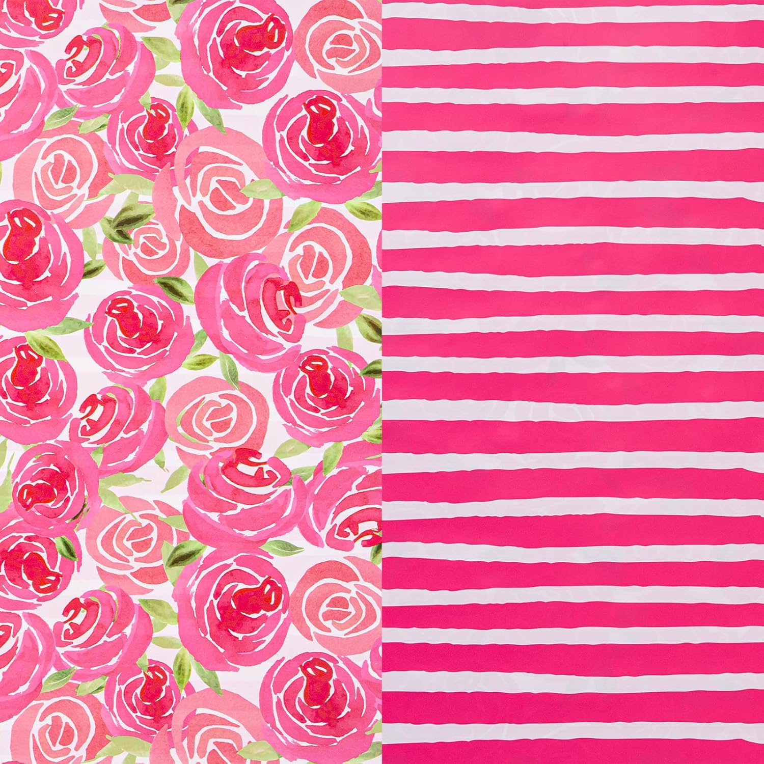 RUSPEPA Reversible Wrapping Paper Roll - Mini Roll - Watercolor Style Pink Rose and Stripe Pattern Great for Mother's Day, Birthday, Party, Wedding and More - 17 Inches X 32.8 Feet