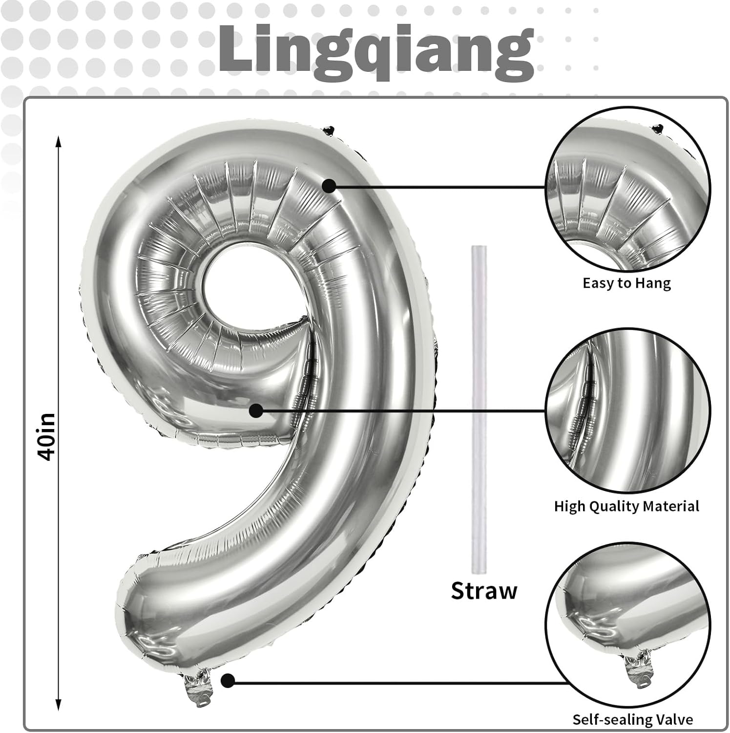 - π Silver Number 9 Balloon π - You will get 1pc 40 inch mylar foil number 9 balloon and 1pc straw. Perfect for 9th 19th 90th birthday or anniversary party decorations supplies.