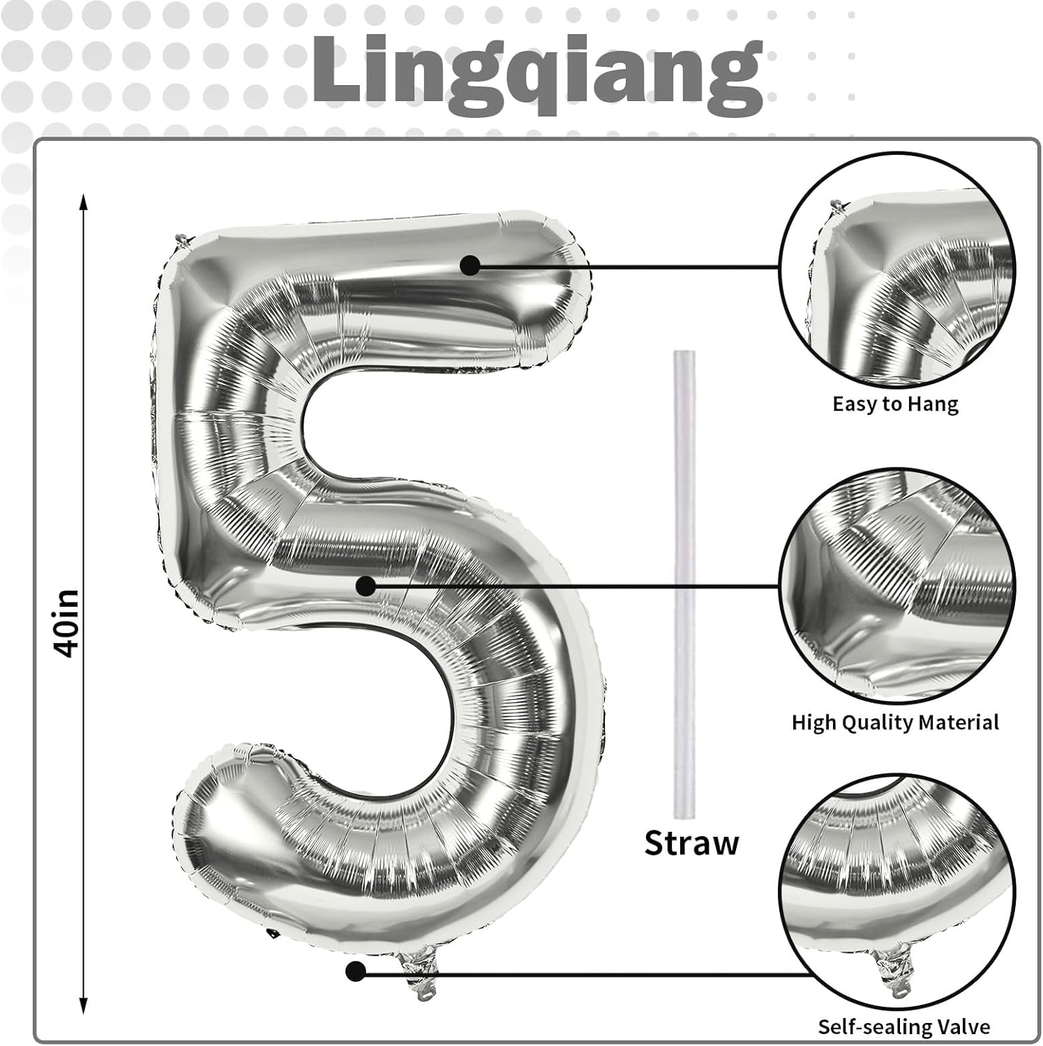 - π Silver Number 5 Balloon π - You will get 1pc 40 inch mylar foil number 5 balloon and 1pc straw. Perfect for 5th 15th 25th 50th 45th birthday or anniversary party decorations supplies.