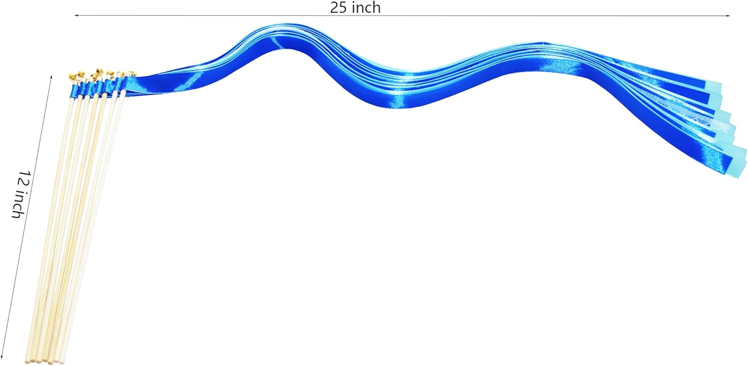 - Each fairy wand has 3 pieces blue ribbon streamer in 24"long, and 1 fairy wooden stick in 12" long with a gold bell. Your special day is nearly upon you, so add the finishing touches to your reception or ceremony starting with our quality Ribbon Wands.Have fun with it as you put the finishing touches on your special day.