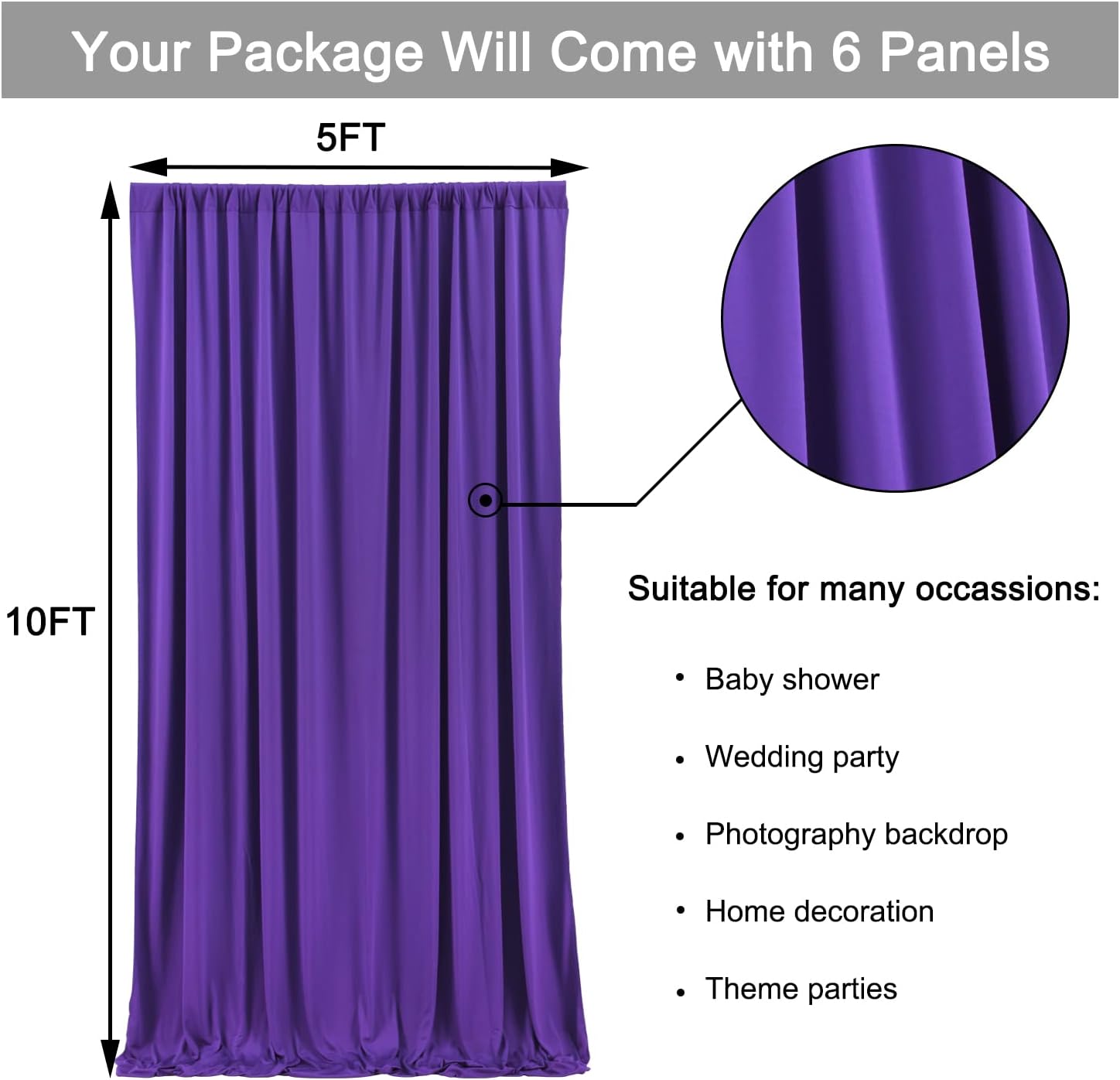 - Wedding Backdrop Curtain Panels: Your package will come with 6 panels purple photography backdrop drapes. Each background panels measures 5ft width and 10ft height.Entire backdrop curtain measures 30ft x 10ft.
