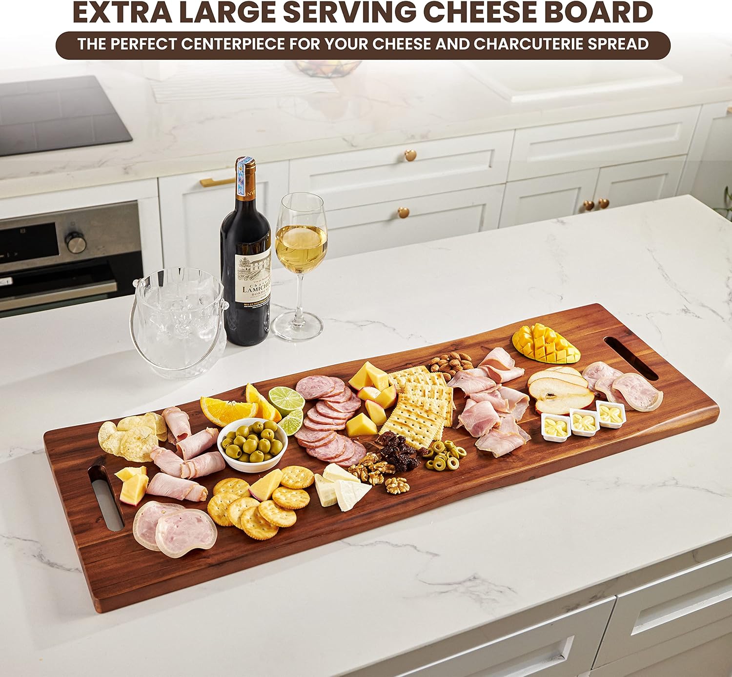 36" Large Acacia Wood Charcuterie Board with Handles - Extra Long Wooden Serving Cheese Boards - Rectangular Serving Platter for Meat Steak, Cracker Appetizers, Fruit Decorative Display Party