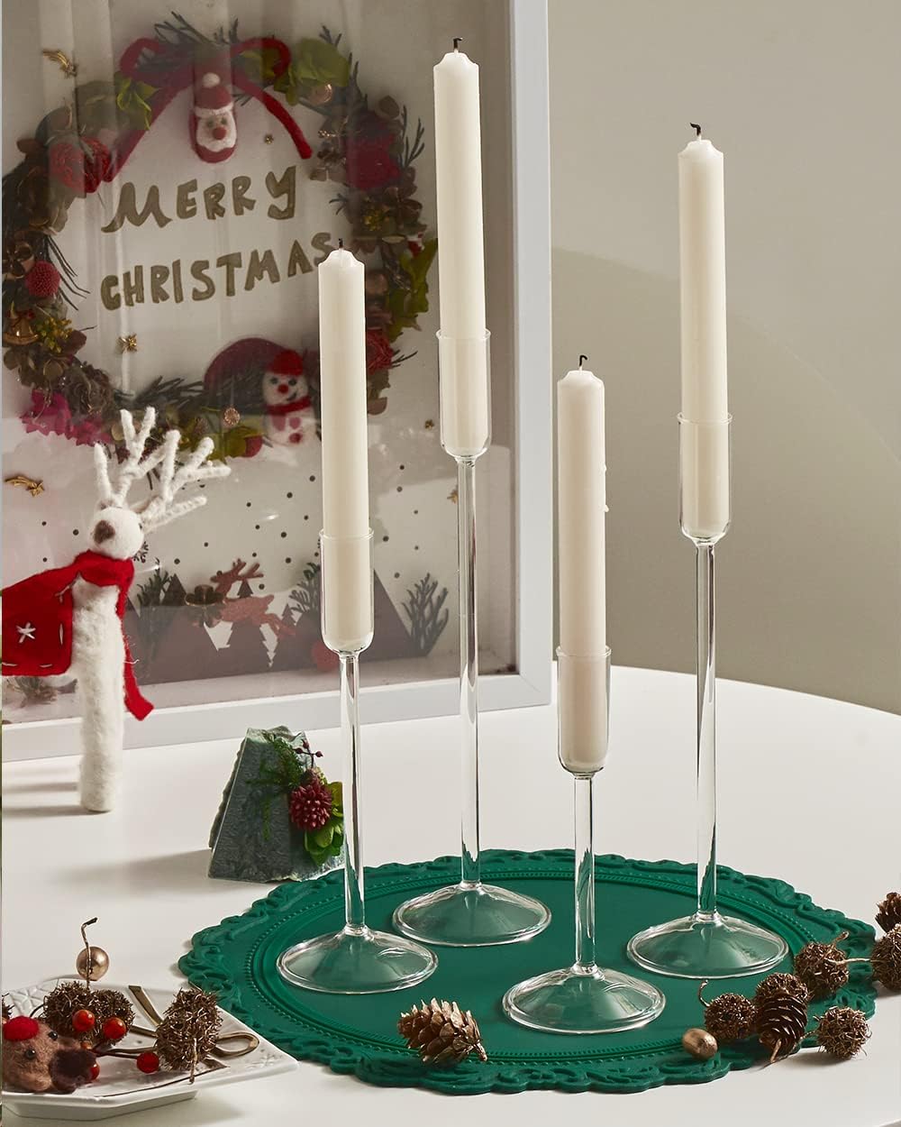 - Willceka glass candle holder set is made of premium borosilicate glass, clear and tough. All in good packaging for your easy storage. Display it on a shelf as is and place as a centerpiece at your next dinner party